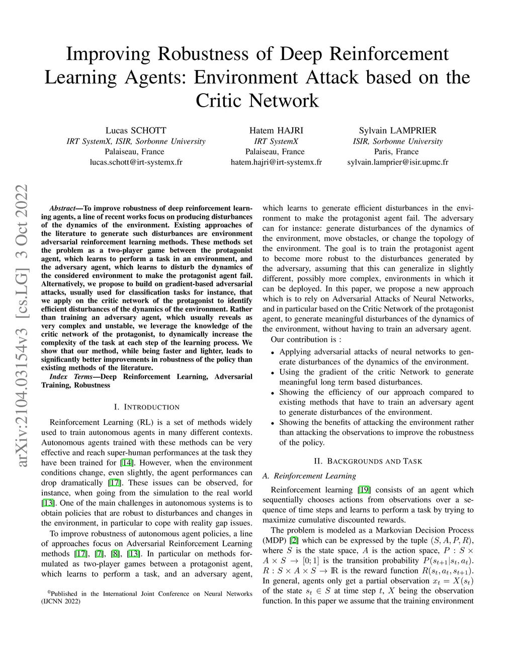 Improving Robustness of Deep Reinforcement Learning Agents: Environment