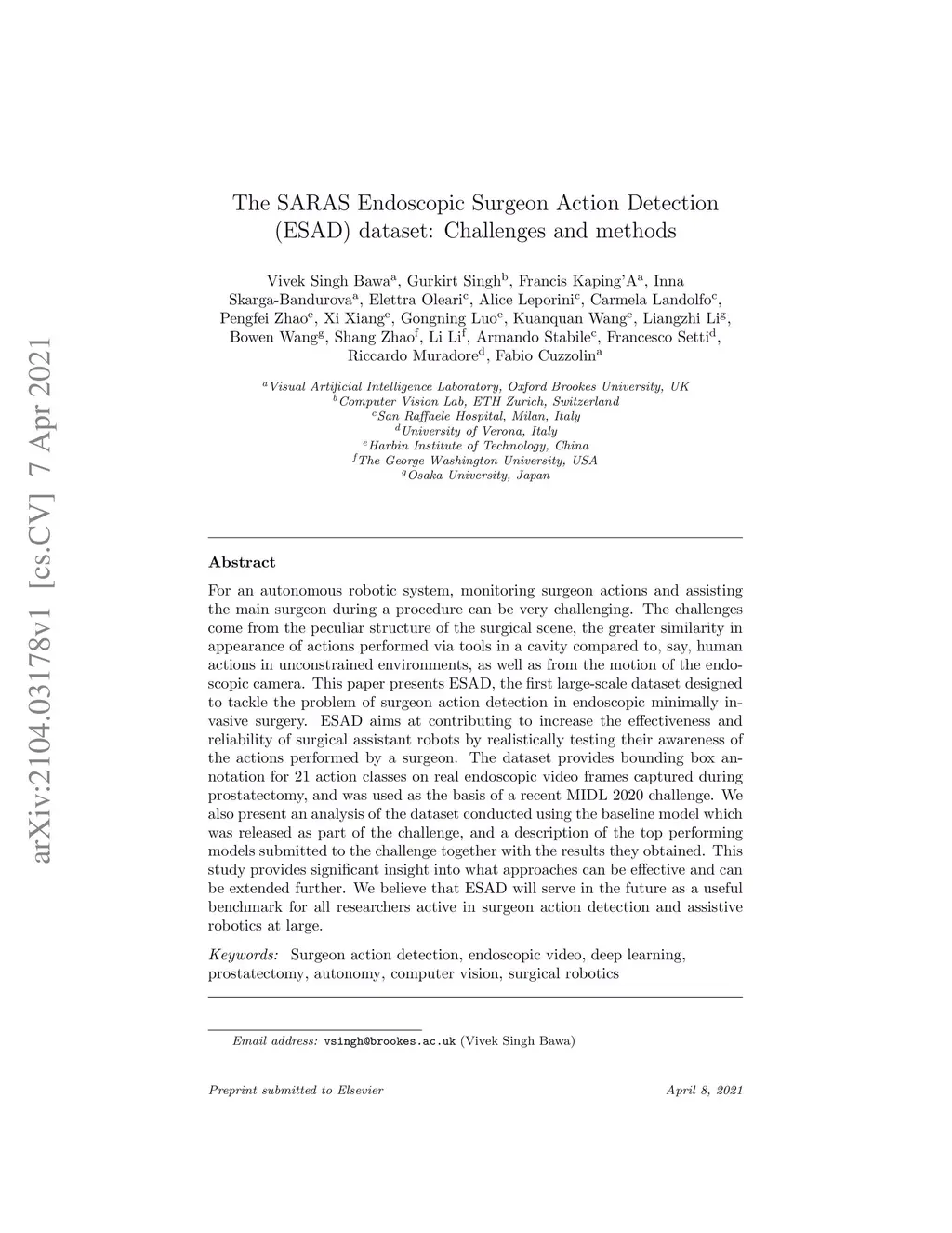 The SARAS Endoscopic Surgeon Action Detection (ESAD) dataset: Challenges