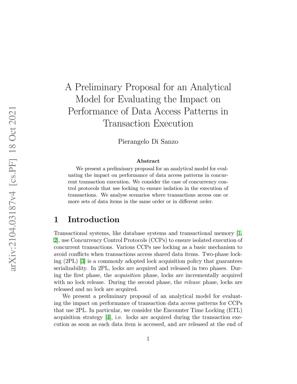 We present a preliminary proposal for an analytical model for evaluating the impact on performance of data access patterns in concurrent transaction execution. We consider the case of concurrency control protocols that use locking to ensure isolation in the execution of transactions. We analyse scenarios where transactions access one or more sets of data items in the same order or in different order.