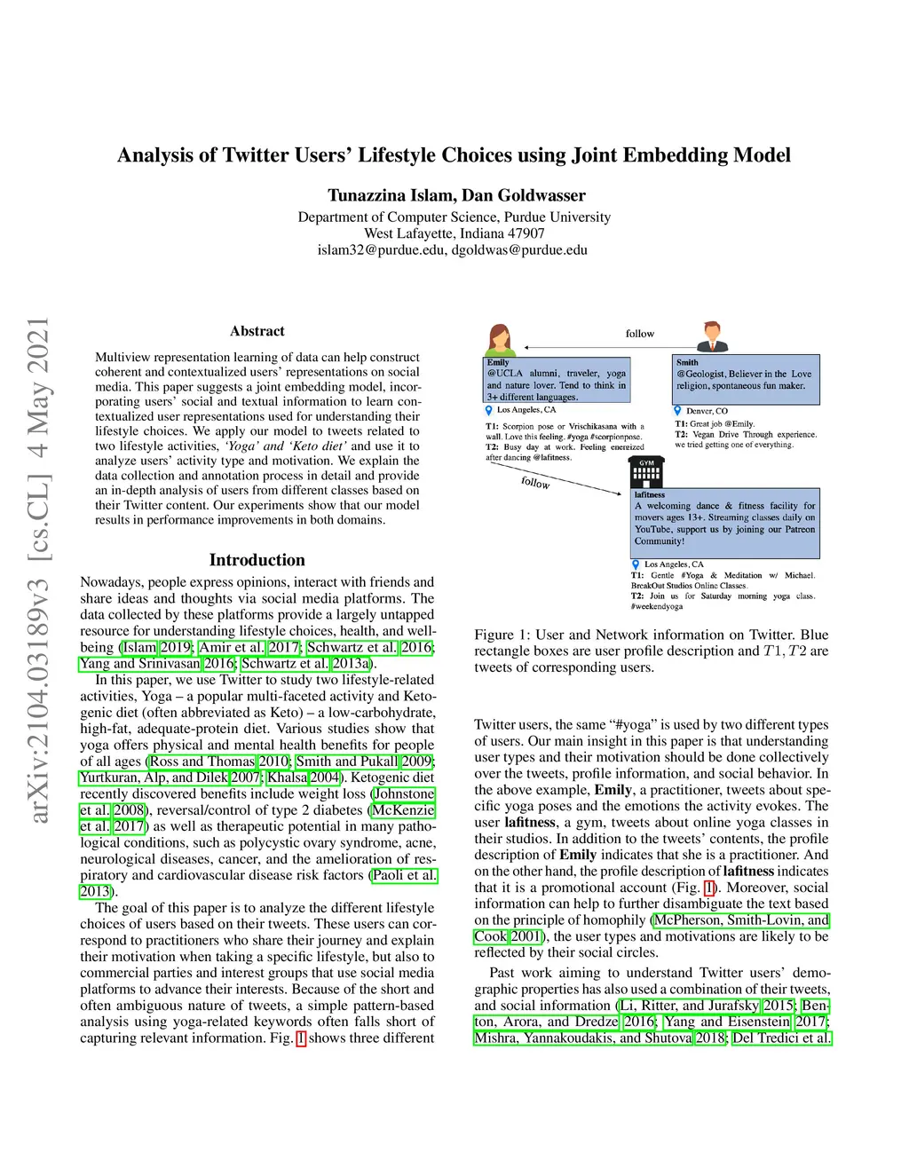 Analysis of Twitter Users' Lifestyle Choices using Joint Embedding Model