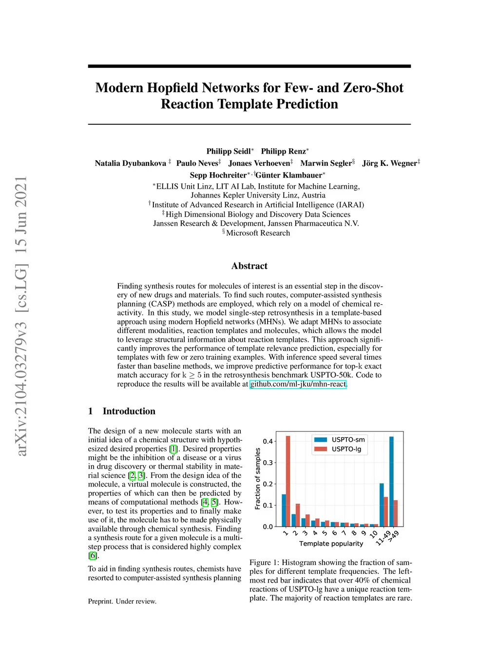 Modern Hopfield Networks for Few- and Zero-Shot Reaction Template