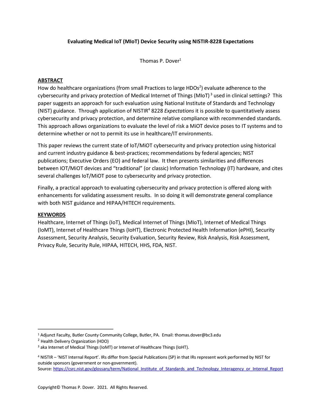 Evaluating Medical IoT (MIoT) Device Security using NISTIR-8228