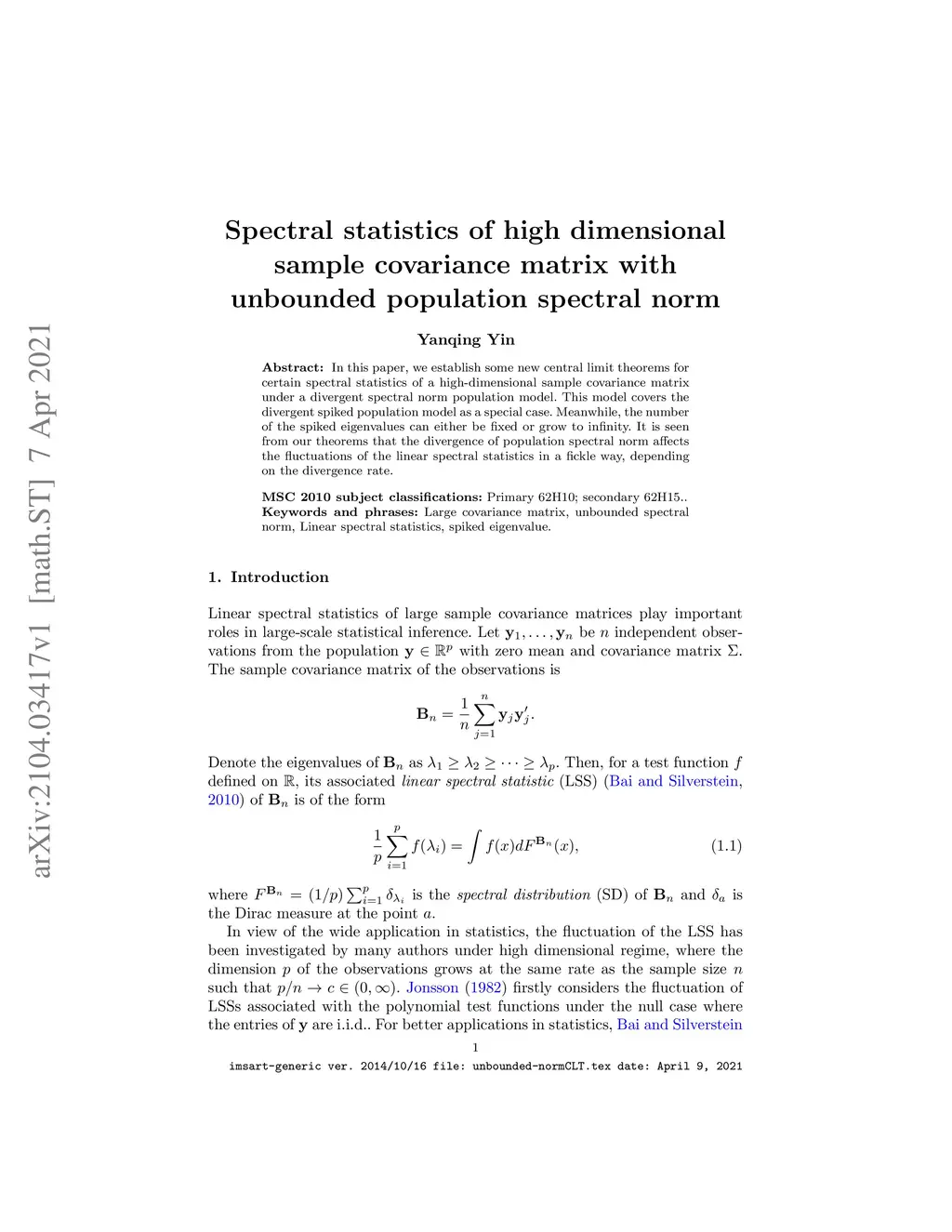 unbounded population spectral norm