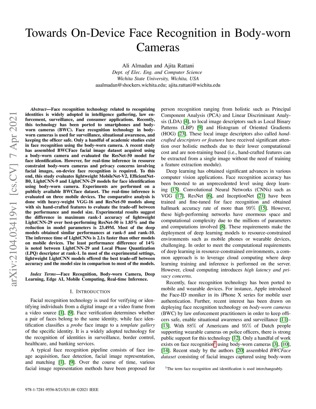 Towards On-Device Face Recognition in Body-worn Cameras