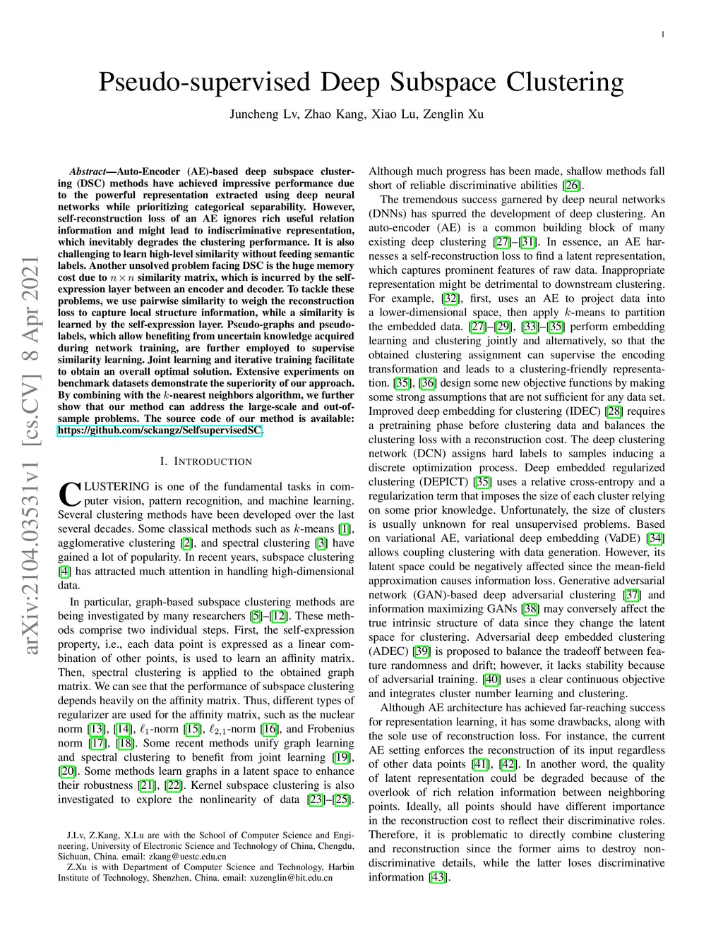 Auto-Encoder (AE)-based deep subspace clustering (DSC) methods have achieved impressive performance due to the powerful representation extracted using deep neural networks while prioritizing categorical separability. However, self-reconstruction loss of an AE ignores rich useful relation information and might lead to indiscriminative representation, which inevitably degrades the clustering performance. It is also challenging to learn high-level similarity without feeding semantic labels. Another unsolved problem facing DSC is the huge memory cost due to similarity matrix, which is incurred by the self-expression layer between an encoder and decoder. To tackle these problems, we use pairwise similarity to weigh the reconstruction loss to capture local structure information, while a similarity is learned by the self-expression layer. Pseudo-graphs and pseudo-labels, which allow benefiting from uncertain knowledge acquired during network training, are further employed to supervise similarity learning. Joint learning and iterative training facilitate to obtain an overall optimal solution. Extensive experiments on benchmark datasets demonstrate the superiority of our approach. By combining with the -nearest neighbors algorithm, we further show that our method can address the large-scale and out-of-sample problems.