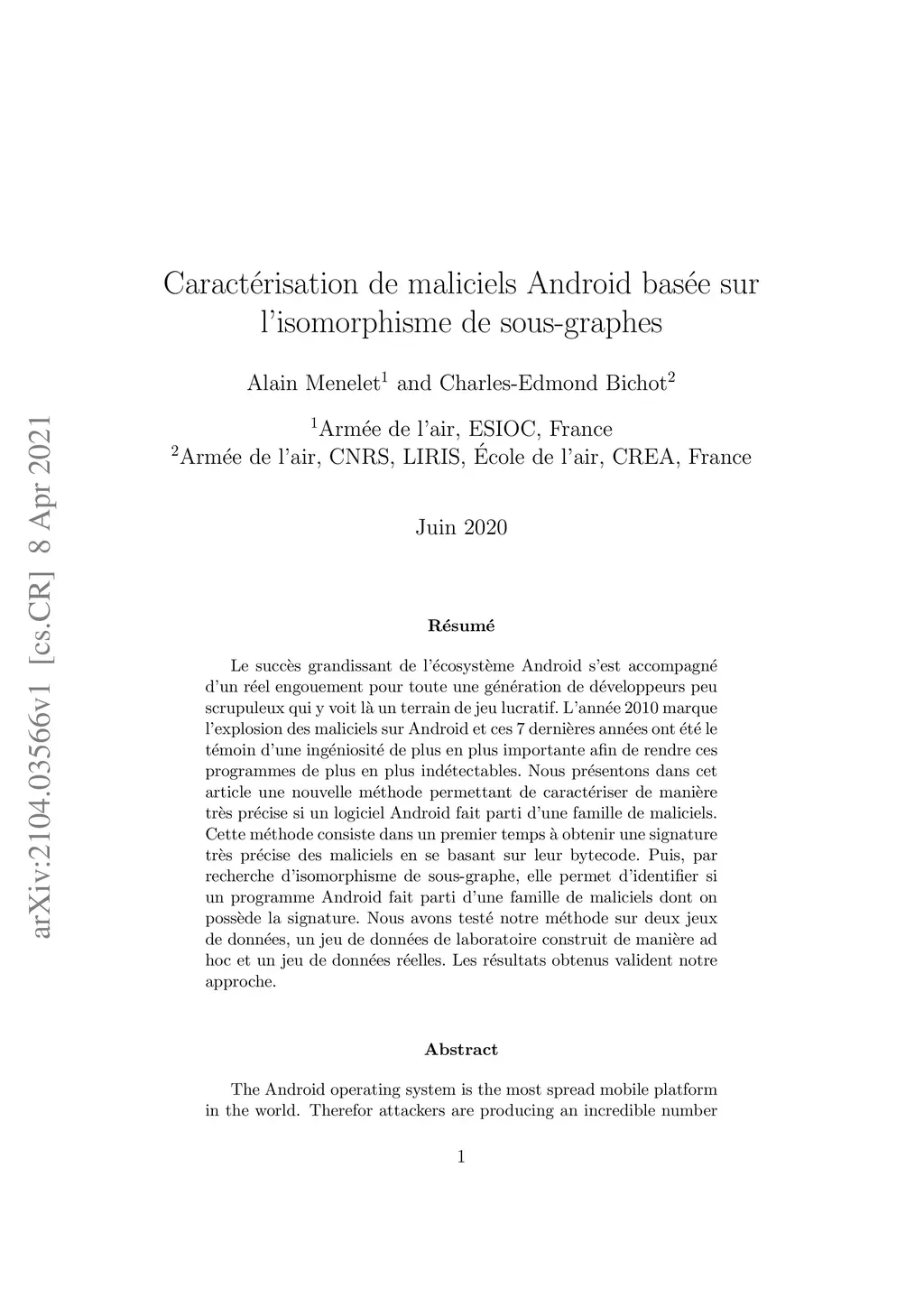 The Android operating system is the most spread mobile platform in the world. Therefor attackers are producing an incredible number of malware applications for Android. Our aim is to detect Android's malware in order to protect the user. To do so really good results are obtained by dynamic analysis of software, but it requires complex environments. In order to achieve the same level of precision we analyze the machine code and investigate the frequencies of ngrams of opcodes in order to detect singular code blocks. This allow us to construct a database of infected code blocks. Then, because attacker may modify and organized differently the infected injected code in their new malware, we perform not only a semantic comparison of the tested software with the database of infected code blocks but also a structured comparison. To do such comparison we compute subgraph isomorphism. It allows us to characterize precisely if the tested software is a malware and if so in witch family it belongs. Our method is tested both on a laboratory database and a set of real data. It achieves an almost perfect detection rate.