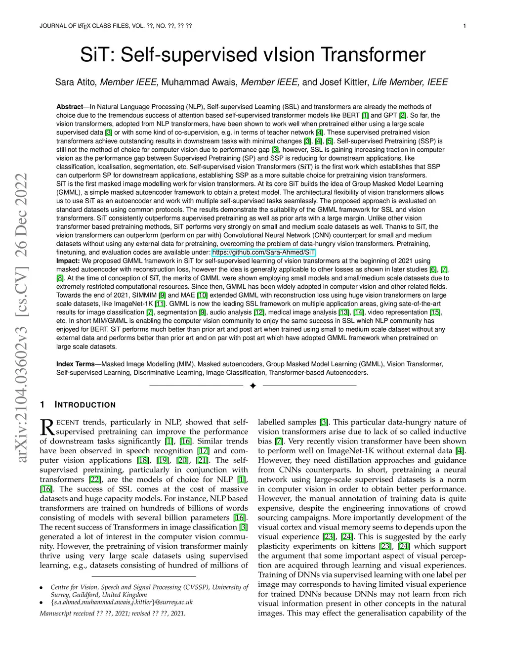SiT: Self-supervised vIsion Transformer