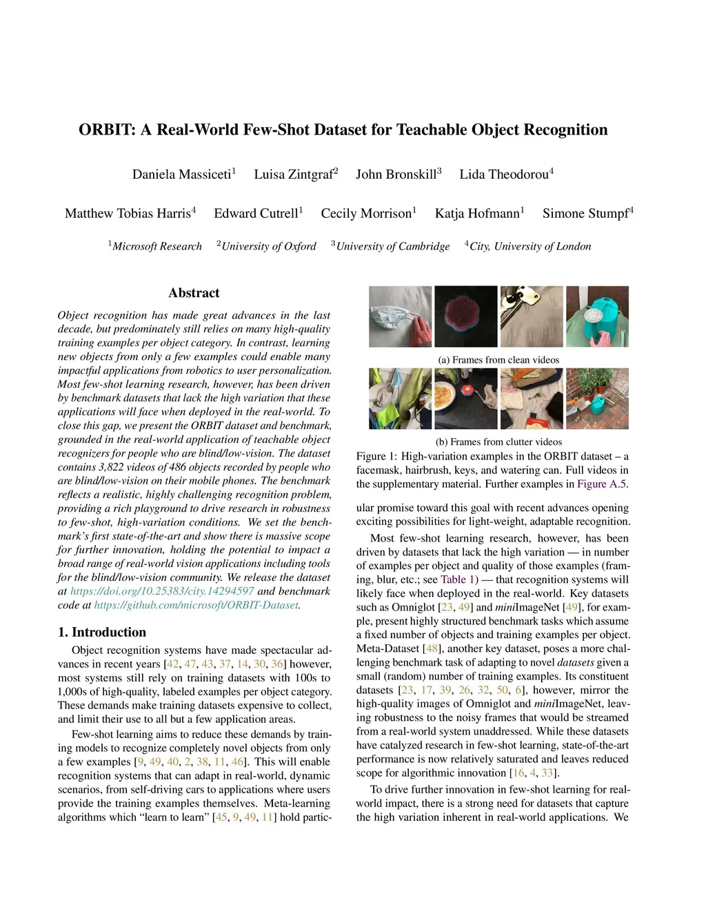 ORBIT: A Real-World Few-Shot Dataset for Teachable Object Recognition