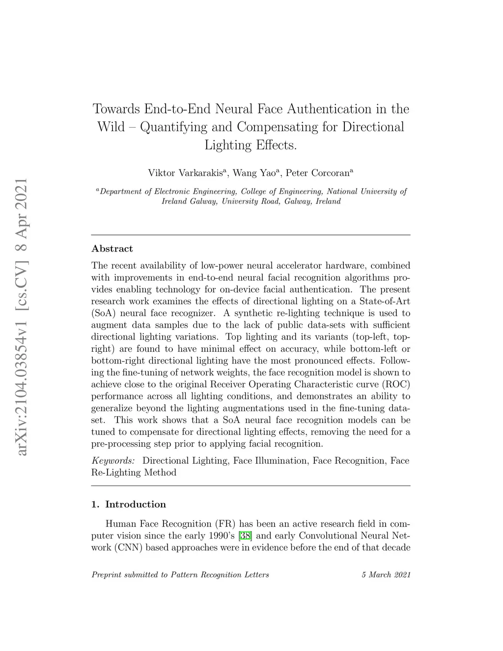 The recent availability of low-power neural accelerator hardware, combined with improvements in end-to-end neural facial recognition algorithms provides, enabling technology for on-device facial authentication. The present research work examines the effects of directional lighting on a State-of-Art(SoA) neural face recognizer. A synthetic re-lighting technique is used to augment data samples due to the lack of public data-sets with sufficient directional lighting variations. Top lighting and its variants (top-left, top-right) are found to have minimal effect on accuracy, while bottom-left or bottom-right directional lighting has the most pronounced effects. Following the fine-tuning of network weights, the face recognition model is shown to achieve close to the original Receiver Operating Characteristic curve (ROC)performance across all lighting conditions and demonstrates an ability to generalize beyond the lighting augmentations used in the fine-tuning data-set. This work shows that an SoA neural face recognition model can be tuned to compensate for directional lighting effects, removing the need for a pre-processing step before applying facial recognition.