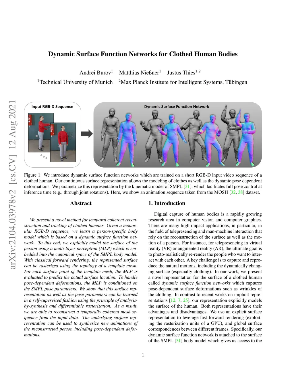 Dynamic Surface Function Networks for Clothed Human Bodies