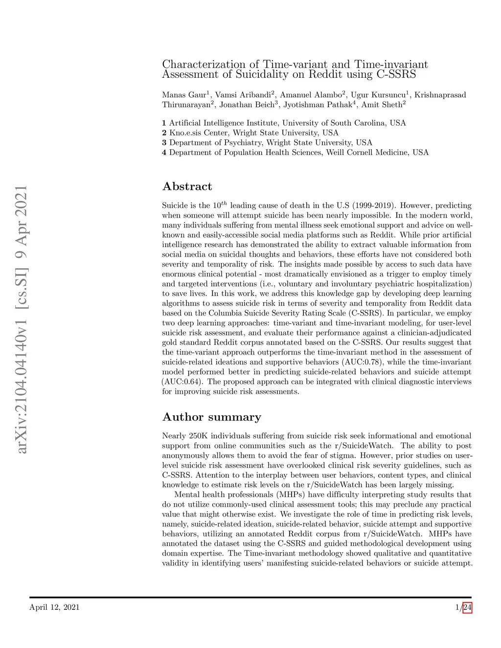 Suicidality on Reddit using C-SSRS