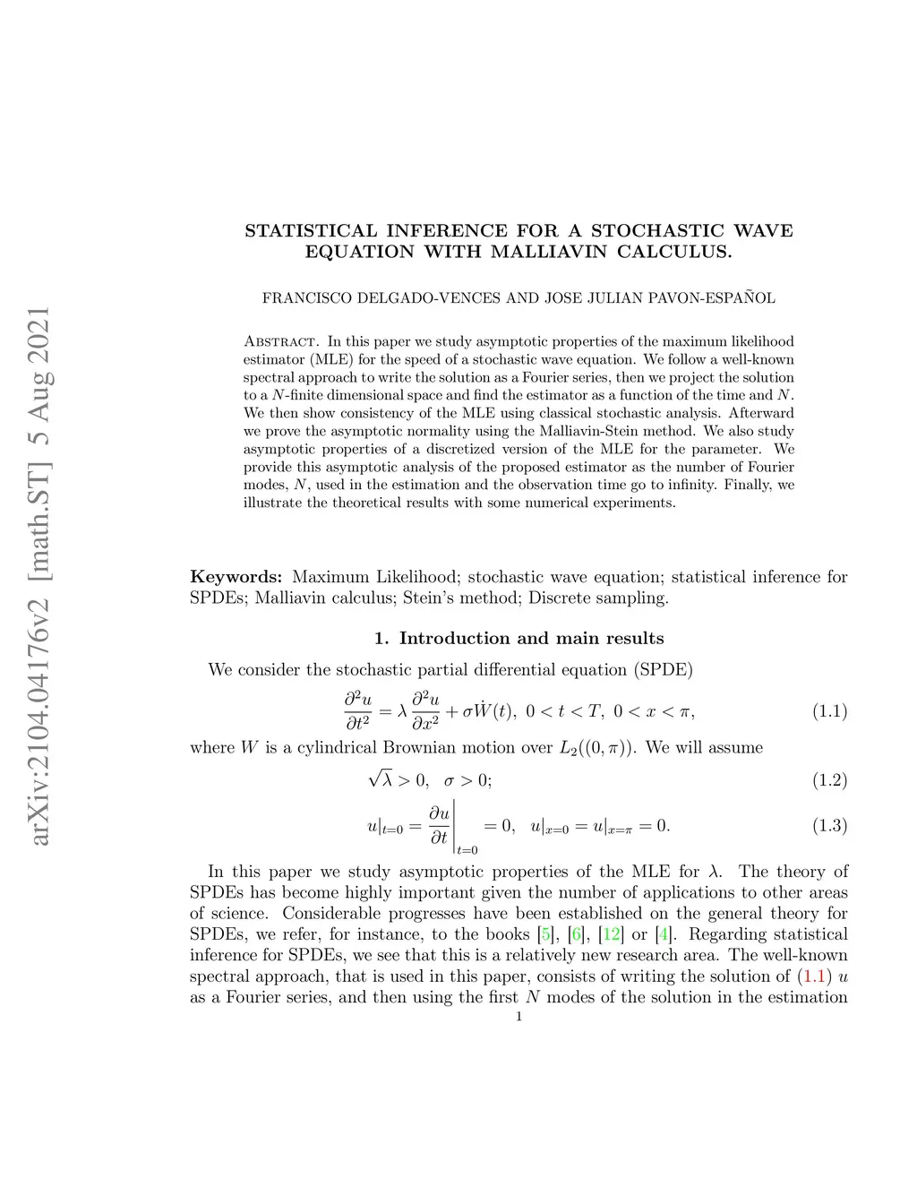 Statistical inference for a stochastic wave equation with Malliavin