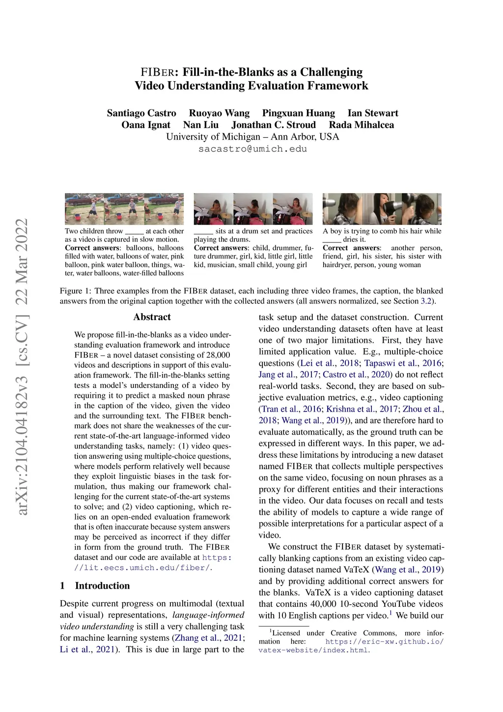 FIBER: Fill-in-the-Blanks as a Challenging Video Understanding