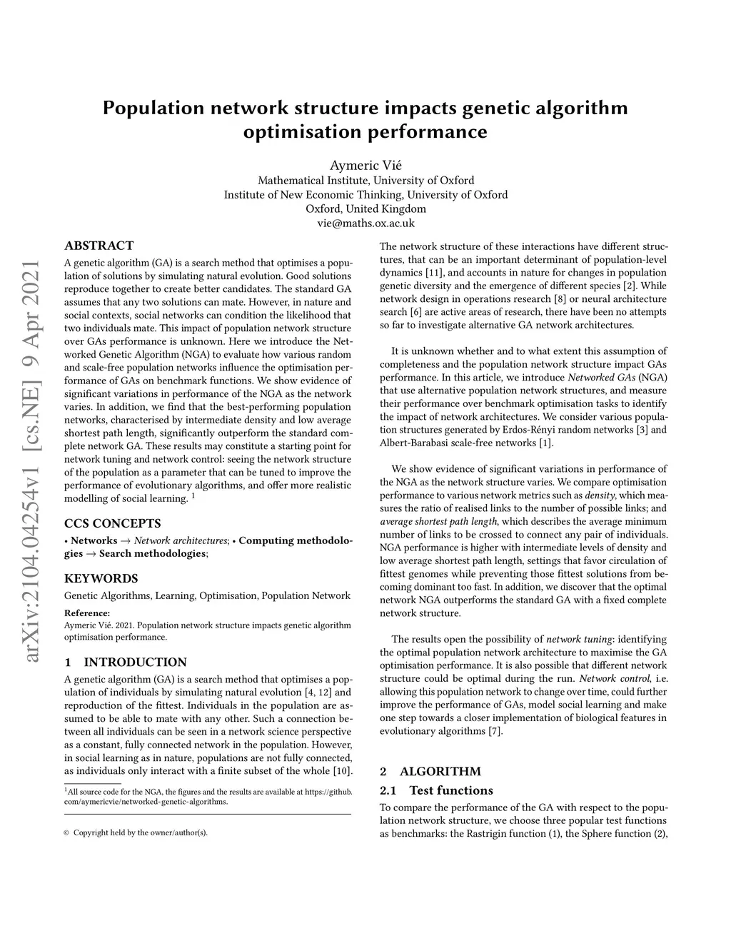Population network structure impacts genetic algorithm optimisation