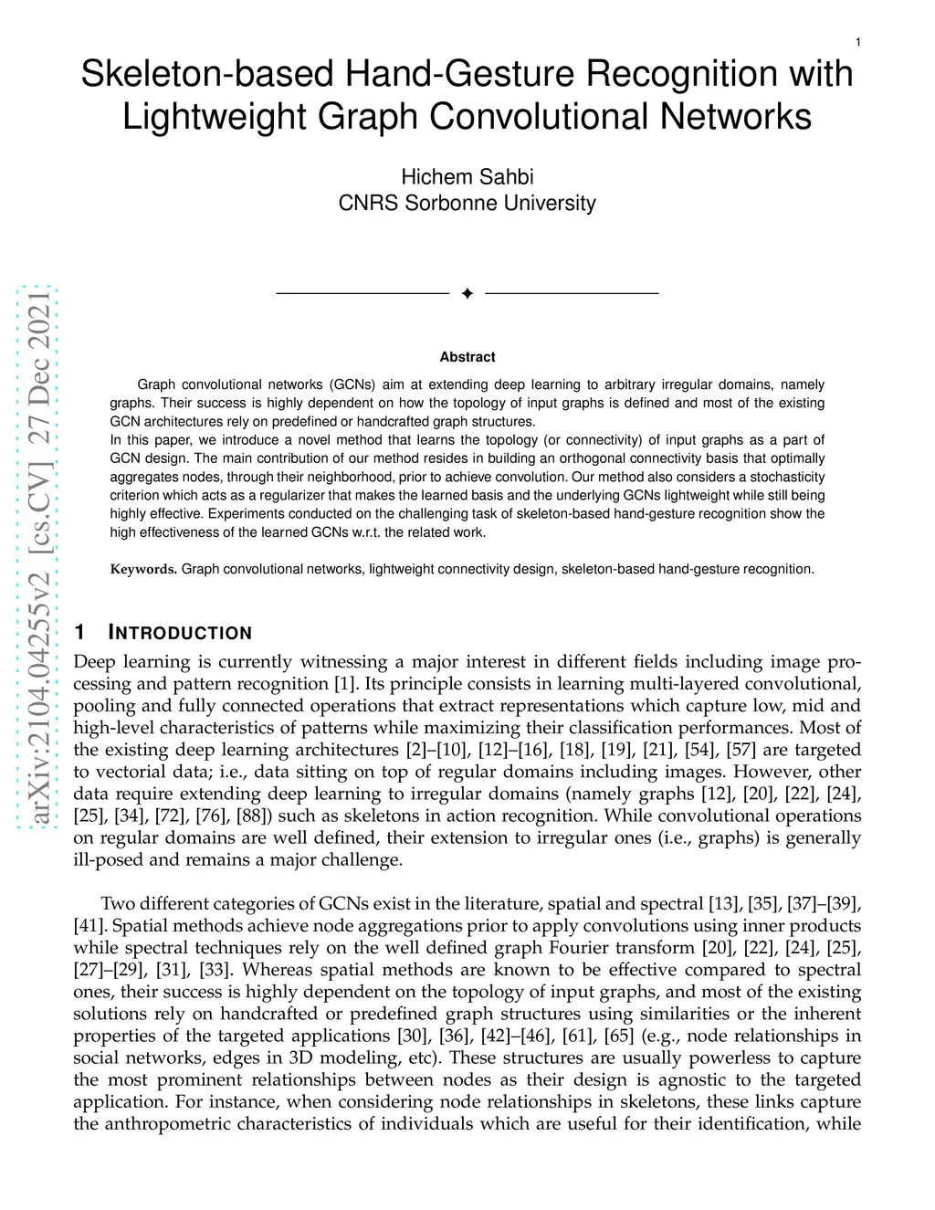 Skeleton-based Hand-Gesture Recognition with Lightweight Graph