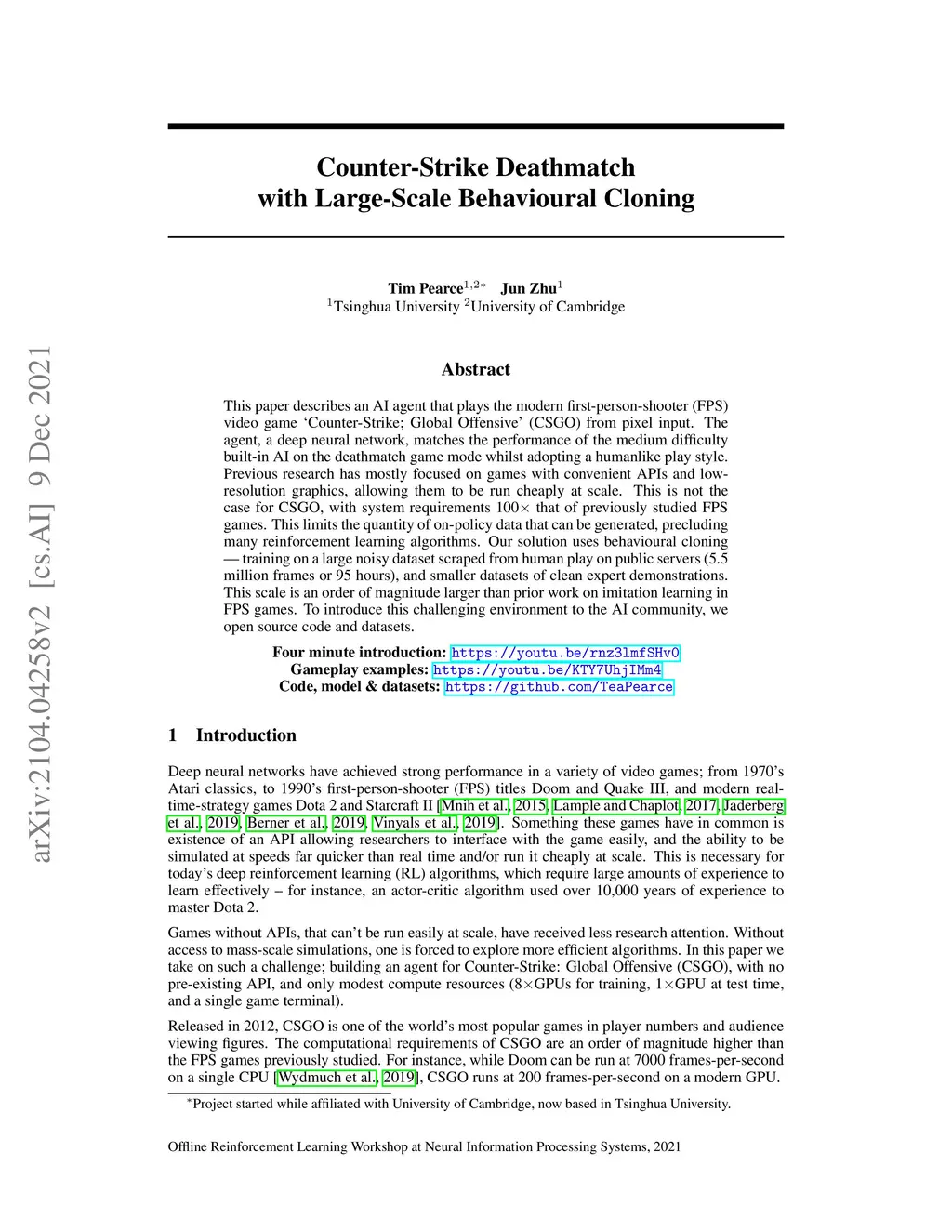Counter-Strike Deathmatch with Large-Scale Behavioural Cloning