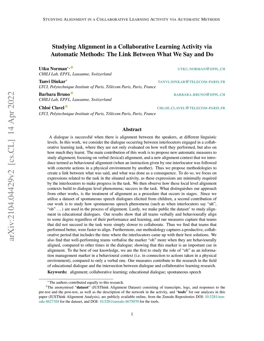 Studying Alignment in a Collaborative Learning Activity via Automatic