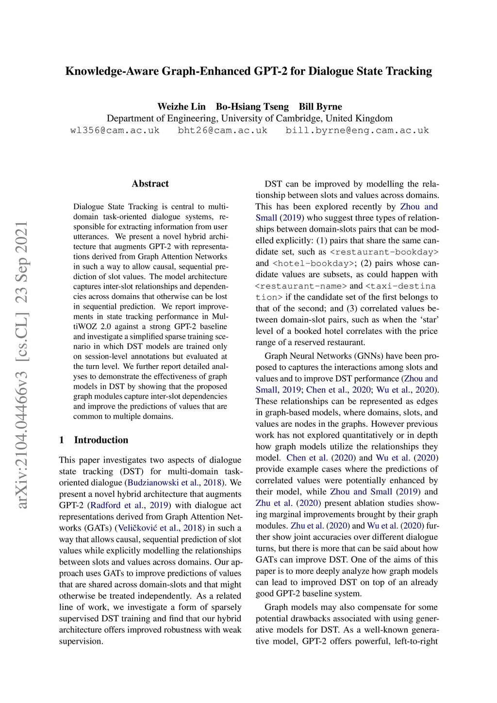 Knowledge-Aware Graph-Enhanced GPT-2 for Dialogue State Tracking