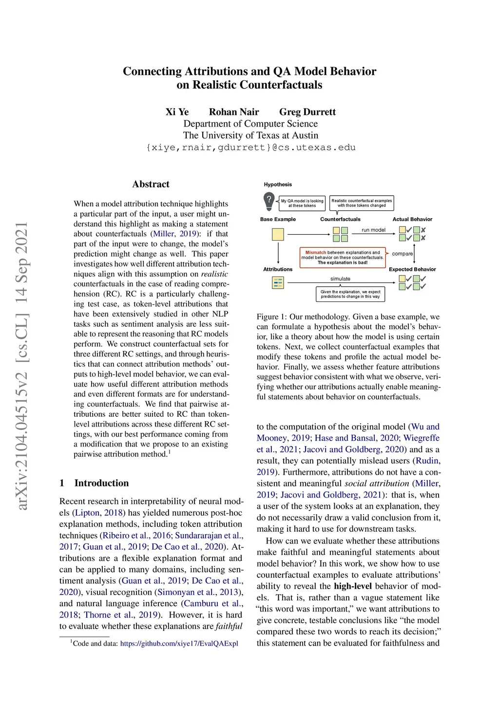 When a model attribution technique highlights a particular part of the input, a user might understand this highlight as making a statement about counterfactuals (Miller, 2019): if that part of the input were to change, the model's prediction might change as well. This paper investigates how well different attribution techniques align with this assumption on realistic counterfactuals in the case of reading comprehension (RC). RC is a particularly challenging test case, as token-level attributions that have been extensively studied in other NLP tasks such as sentiment analysis are less suitable to represent the reasoning that RC models perform. We construct counterfactual sets for three different RC settings, and through heuristics that can connect attribution methods' outputs to high-level model behavior, we can evaluate how useful different attribution methods and even different formats are for understanding counterfactuals. We find that pairwise attributions are better suited to RC than token-level attributions across these different RC settings, with our best performance coming from a modification that we propose to an existing pairwise attribution method.