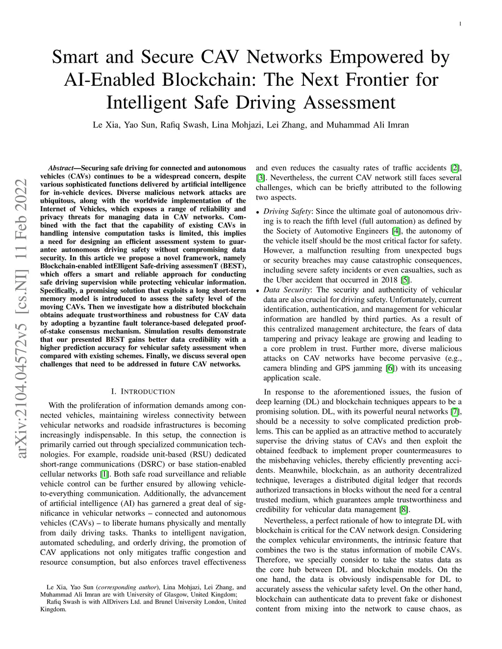 Securing safe driving for connected and autonomous vehicles (CAVs) continues to be a widespread concern, despite various sophisticated functions delivered by artificial intelligence for in-vehicle devices. Diverse malicious network attacks are ubiquitous, along with the worldwide implementation of the Internet of Vehicles, which exposes a range of reliability and privacy threats for managing data in CAV networks. Combined with the fact that the capability of existing CAVs in handling intensive computation tasks is limited, this implies a need for designing an efficient assessment system to guarantee autonomous driving safety without compromising data security. In this article we propose a novel framework, namely Blockchain-enabled intElligent Safe-driving assessmenT (BEST), which offers a smart and reliable approach for conducting safe driving supervision while protecting vehicular information. Specifically, a promising solution that exploits a long short-term memory model is introduced to assess the safety level of the moving CAVs. Then we investigate how a distributed blockchain obtains adequate trustworthiness and robustness for CAV data by adopting a byzantine fault tolerance-based delegated proof-of-stake consensus mechanism. Simulation results demonstrate that our presented BEST gains better data credibility with a higher prediction accuracy for vehicular safety assessment when compared with existing schemes. Finally, we discuss several open challenges that need to be addressed in future CAV networks.