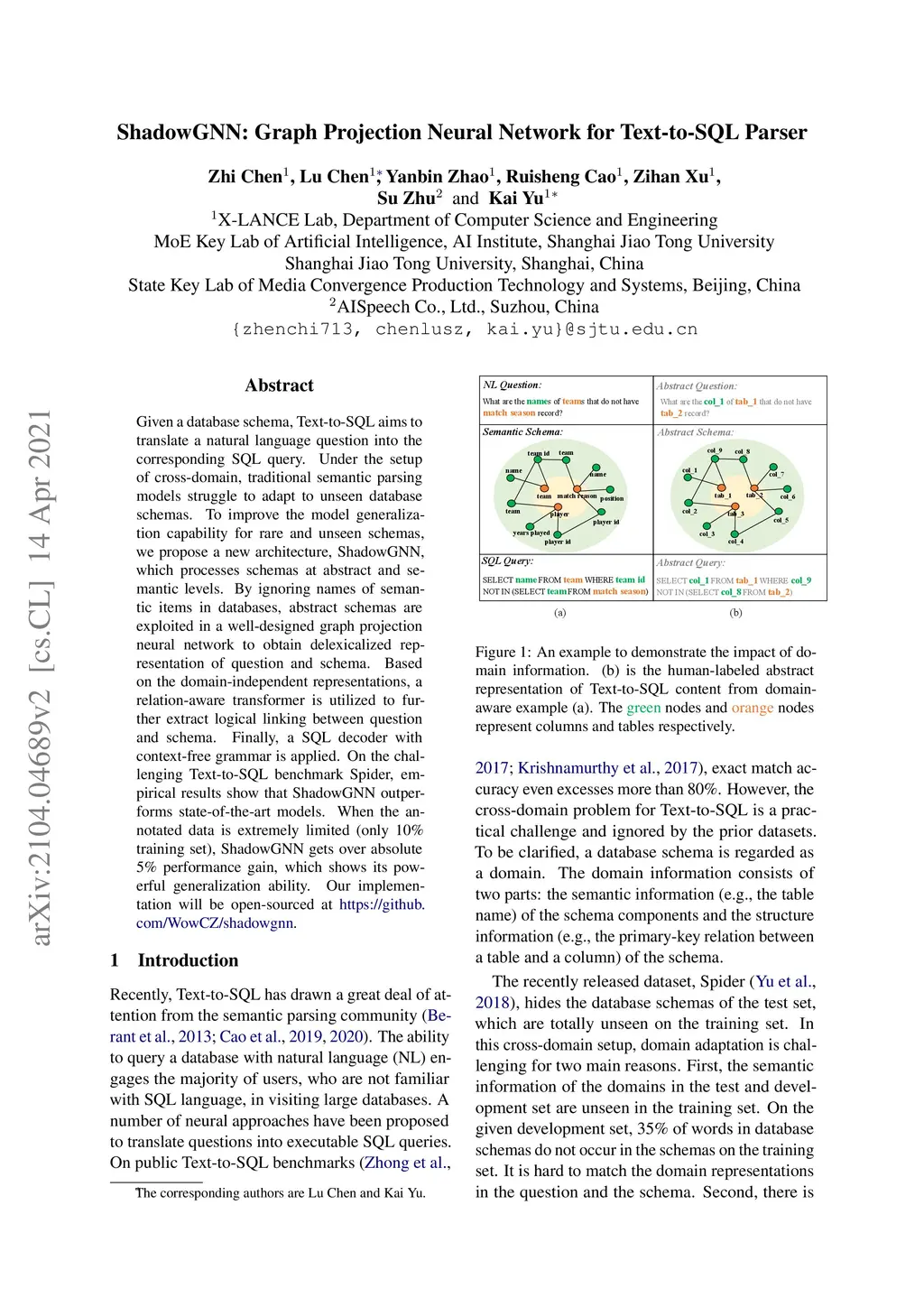 ShadowGNN: Graph Projection Neural Network for Text-to-SQL Parser