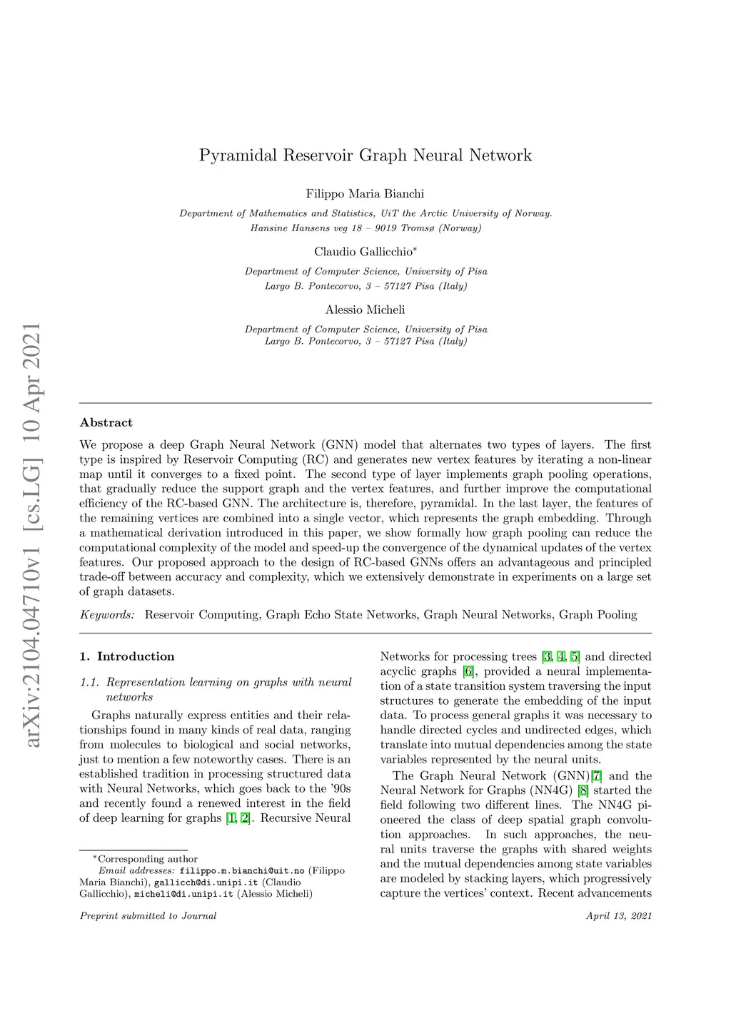 Pyramidal Reservoir Graph Neural Network