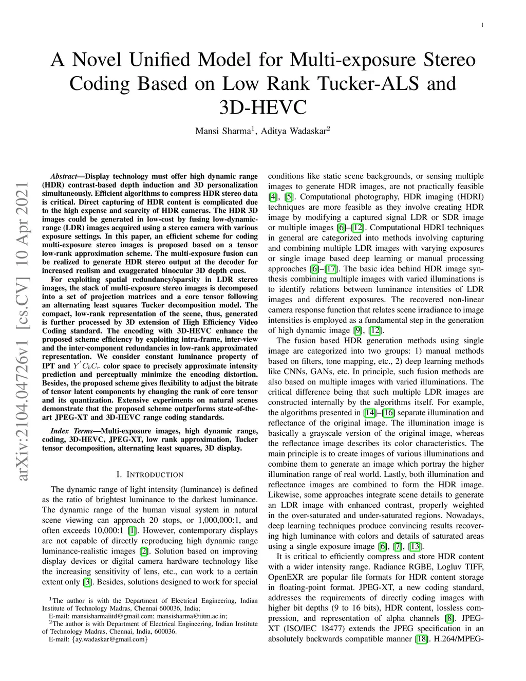 A New Comprehensive Framework for Multi-Exposure Stereo Coding Utilizing Low Rank Tucker-ALS and 3D-HEVC Techniques