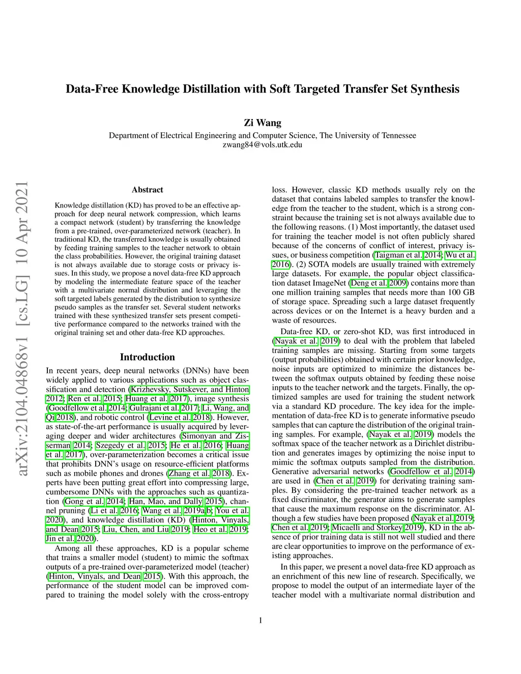 Data-Free Knowledge Distillation with Soft Targeted Transfer Set