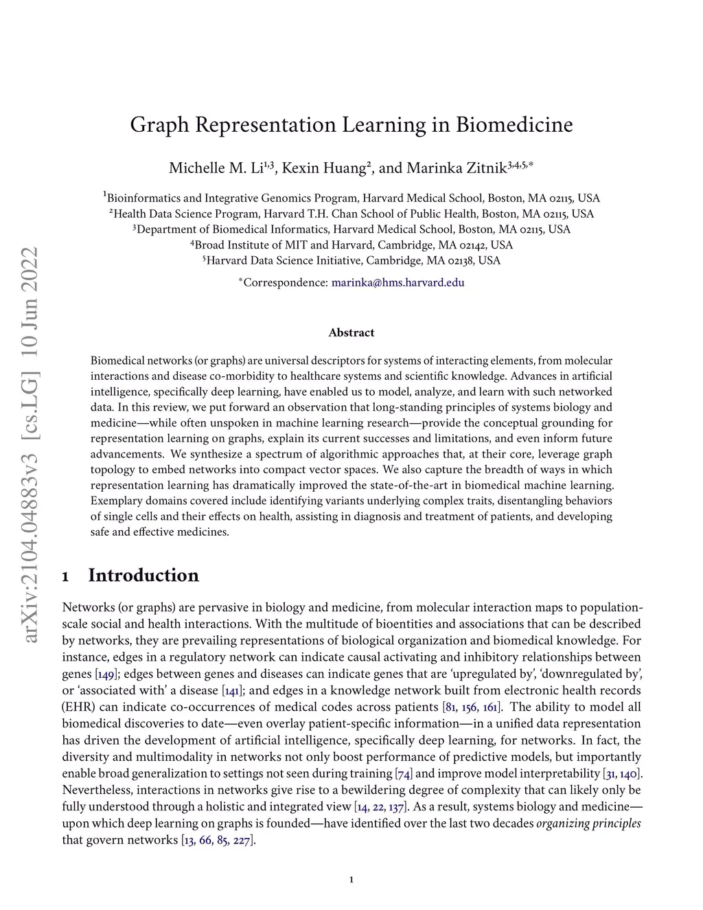 Biomedical networks (or graphs) are universal descriptors for systems of interacting elements, from molecular interactions and disease co-morbidity to healthcare systems and scientific knowledge. Advances in artificial intelligence, specifically deep learning, have enabled us to model, analyze, and learn with such networked data. In this review, we put forward an observation that long-standing principles of systems biology and medicine -- while often unspoken in machine learning research -- provide the conceptual grounding for representation learning on graphs, explain its current successes and limitations, and even inform future advancements. We synthesize a spectrum of algorithmic approaches that, at their core, leverage graph topology to embed networks into compact vector spaces. We also capture the breadth of ways in which representation learning has dramatically improved the state-of-the-art in biomedical machine learning. Exemplary domains covered include identifying variants underlying complex traits, disentangling behaviors of single cells and their effects on health, assisting in diagnosis and treatment of patients, and developing safe and effective medicines.