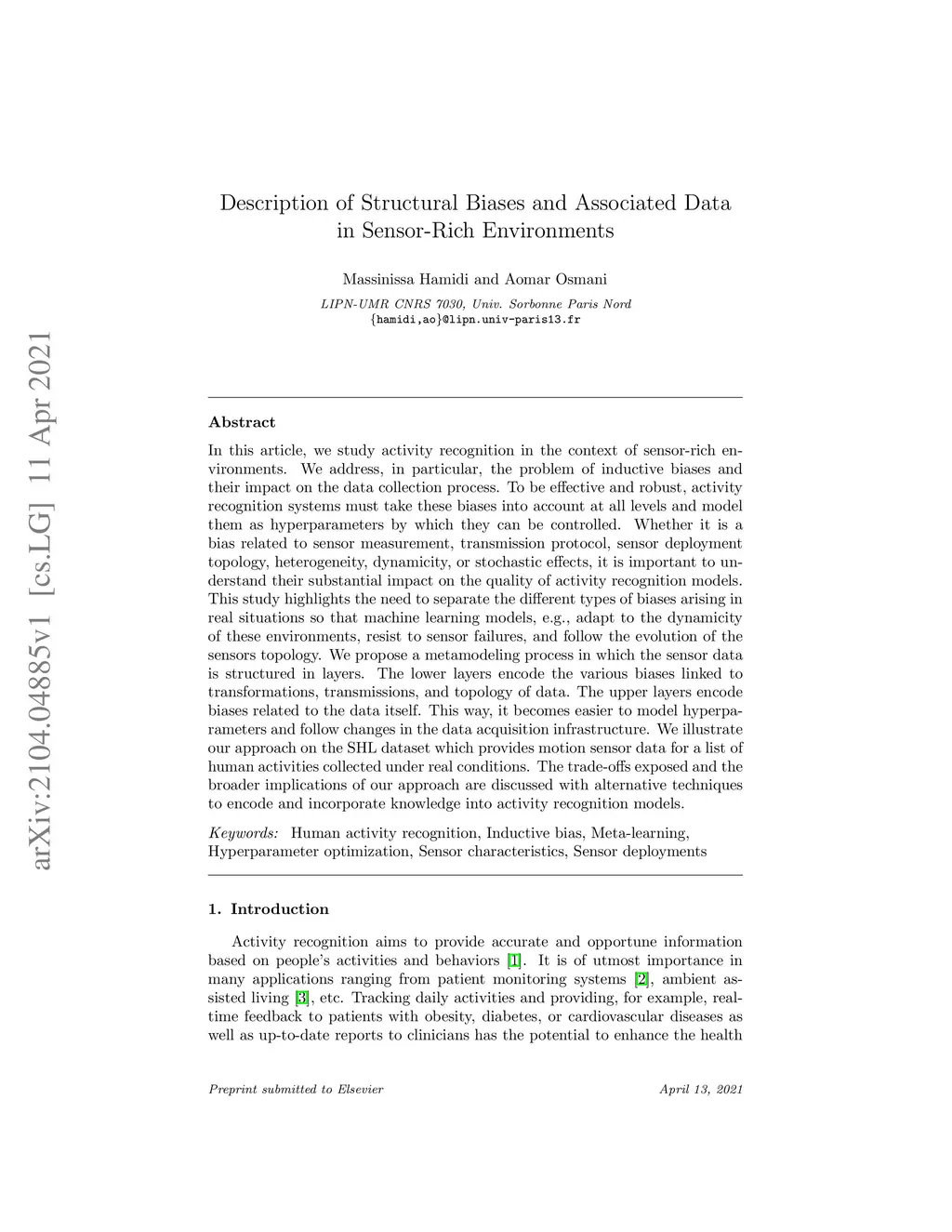 In this article, we study activity recognition in the context of sensor-rich environments. We address, in particular, the problem of inductive biases and their impact on the data collection process. To be effective and robust, activity recognition systems must take these biases into account at all levels and model them as hyperparameters by which they can be controlled. Whether it is a bias related to sensor measurement, transmission protocol, sensor deployment topology, heterogeneity, dynamicity, or stochastic effects, it is important to understand their substantial impact on the quality of activity recognition models. This study highlights the need to separate the different types of biases arising in real situations so that machine learning models, e.g., adapt to the dynamicity of these environments, resist to sensor failures, and follow the evolution of the sensors topology. We propose a metamodeling process in which the sensor data is structured in layers. The lower layers encode the various biases linked to transformations, transmissions, and topology of data. The upper layers encode biases related to the data itself. This way, it becomes easier to model hyperparameters and follow changes in the data acquisition infrastructure. We illustrate our approach on the SHL dataset which provides motion sensor data for a list of human activities collected under real conditions. The trade-offs exposed and the broader implications of our approach are discussed with alternative techniques to encode and incorporate knowledge into activity recognition models.