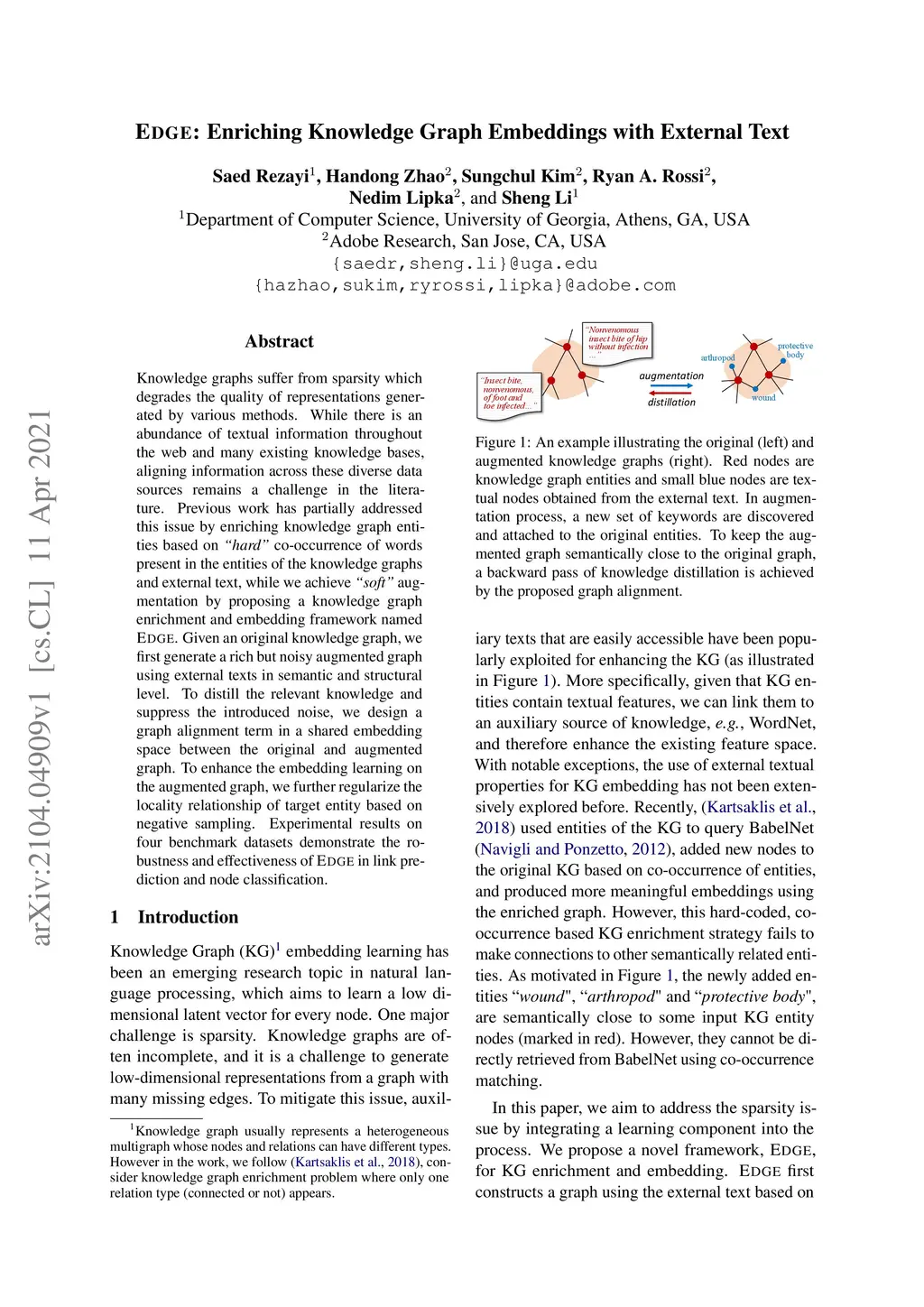 Edge: Enriching Knowledge Graph Embeddings with External Text