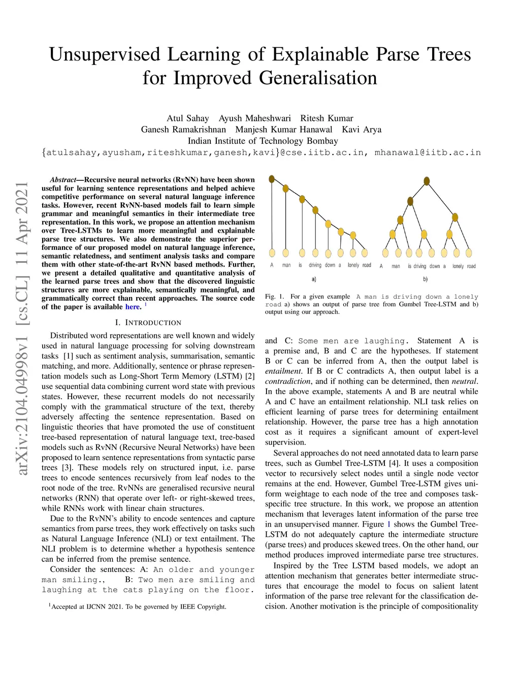 Unsupervised Learning of Explainable Parse Trees for Improved