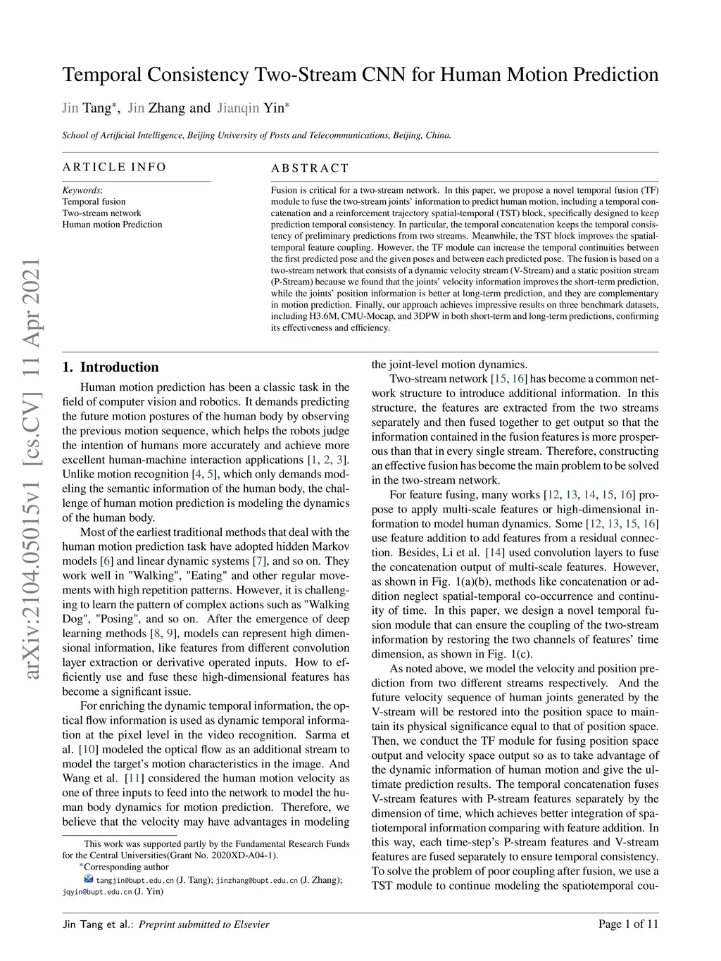 Temporal Consistency Two-Stream CNN for Human Motion Prediction