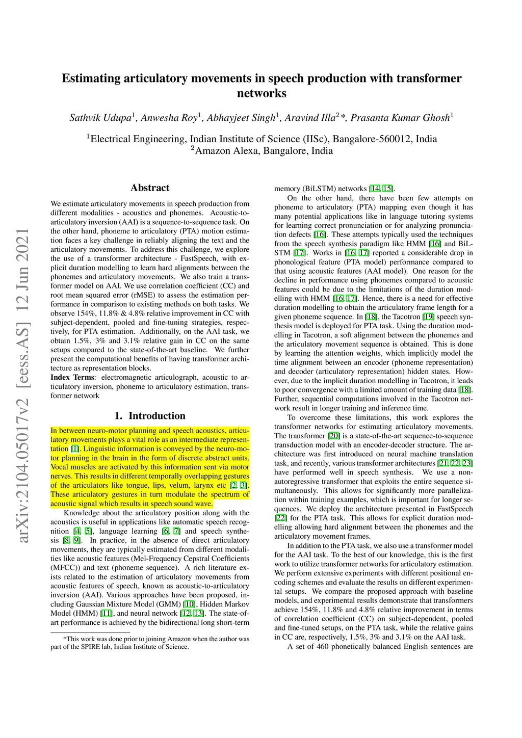 We estimate articulatory movements in speech production from different modalities - acoustics and phonemes. Acoustic-to articulatory inversion (AAI) is a sequence-to-sequence task. On the other hand, phoneme to articulatory (PTA) motion estimation faces a key challenge in reliably aligning the text and the articulatory movements. To address this challenge, we explore the use of a transformer architecture - FastSpeech, with explicit duration modelling to learn hard alignments between the phonemes and articulatory movements. We also train a transformer model on AAI. We use correlation coefficient (CC) and root mean squared error (rMSE) to assess the estimation performance in comparison to existing methods on both tasks. We observe 154%, 11.8% & 4.8% relative improvement in CC with subject-dependent, pooled and fine-tuning strategies, respectively, for PTA estimation. Additionally, on the AAI task, we obtain 1.5%, 3% and 3.1% relative gain in CC on the same setups compared to the state-of-the-art baseline. We further present the computational benefits of having transformer architecture as representation blocks.