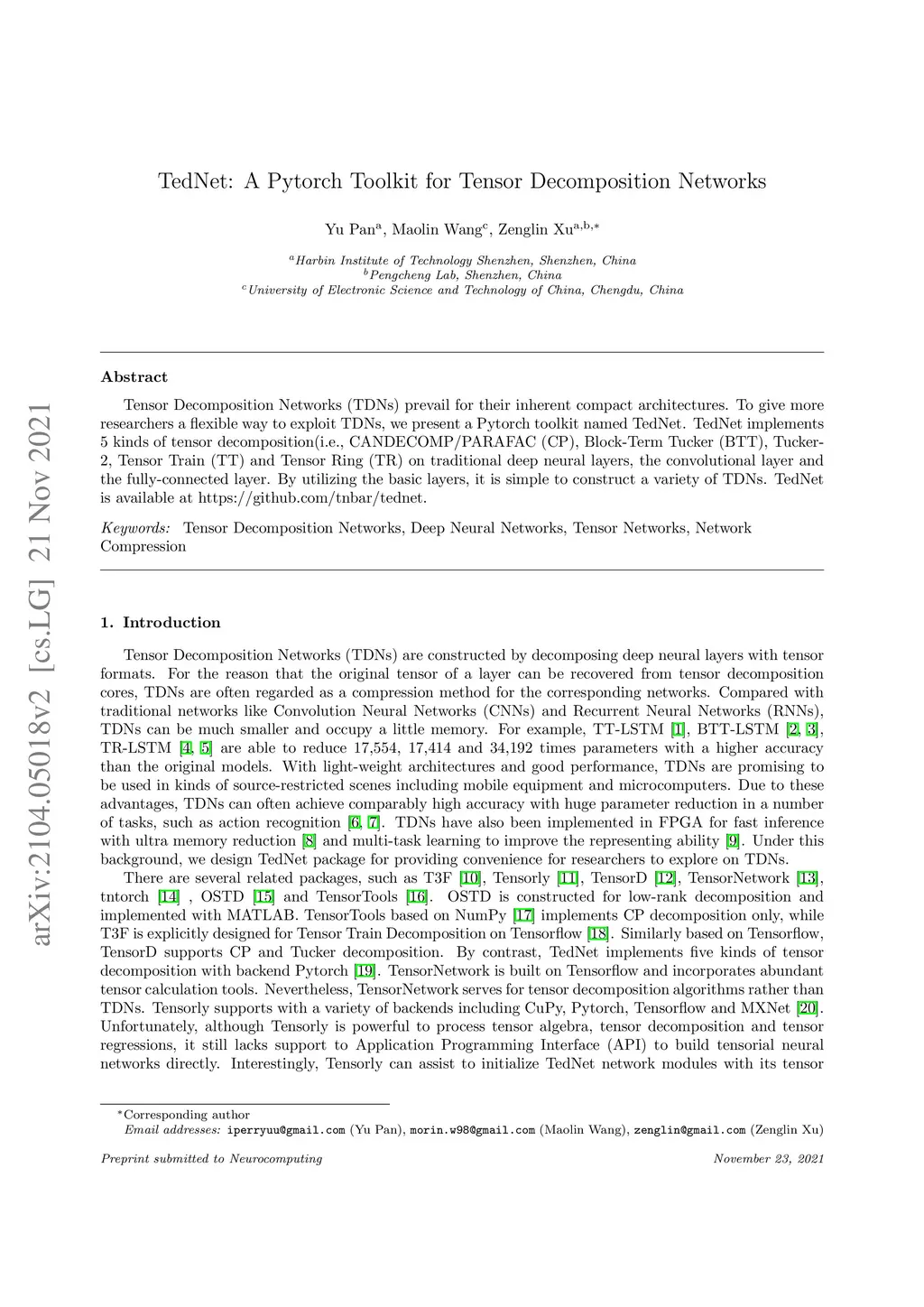TedNet: A Pytorch Toolkit for Tensor Decomposition Networks