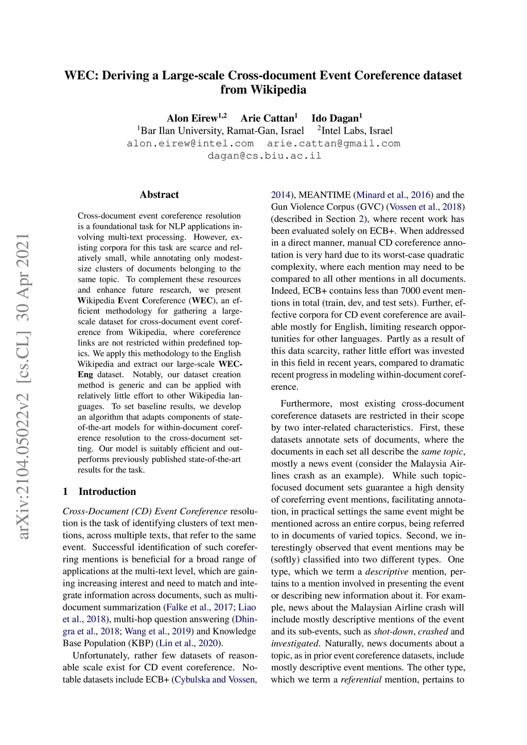 WEC: Deriving a Large-scale Cross-document Event Coreference dataset