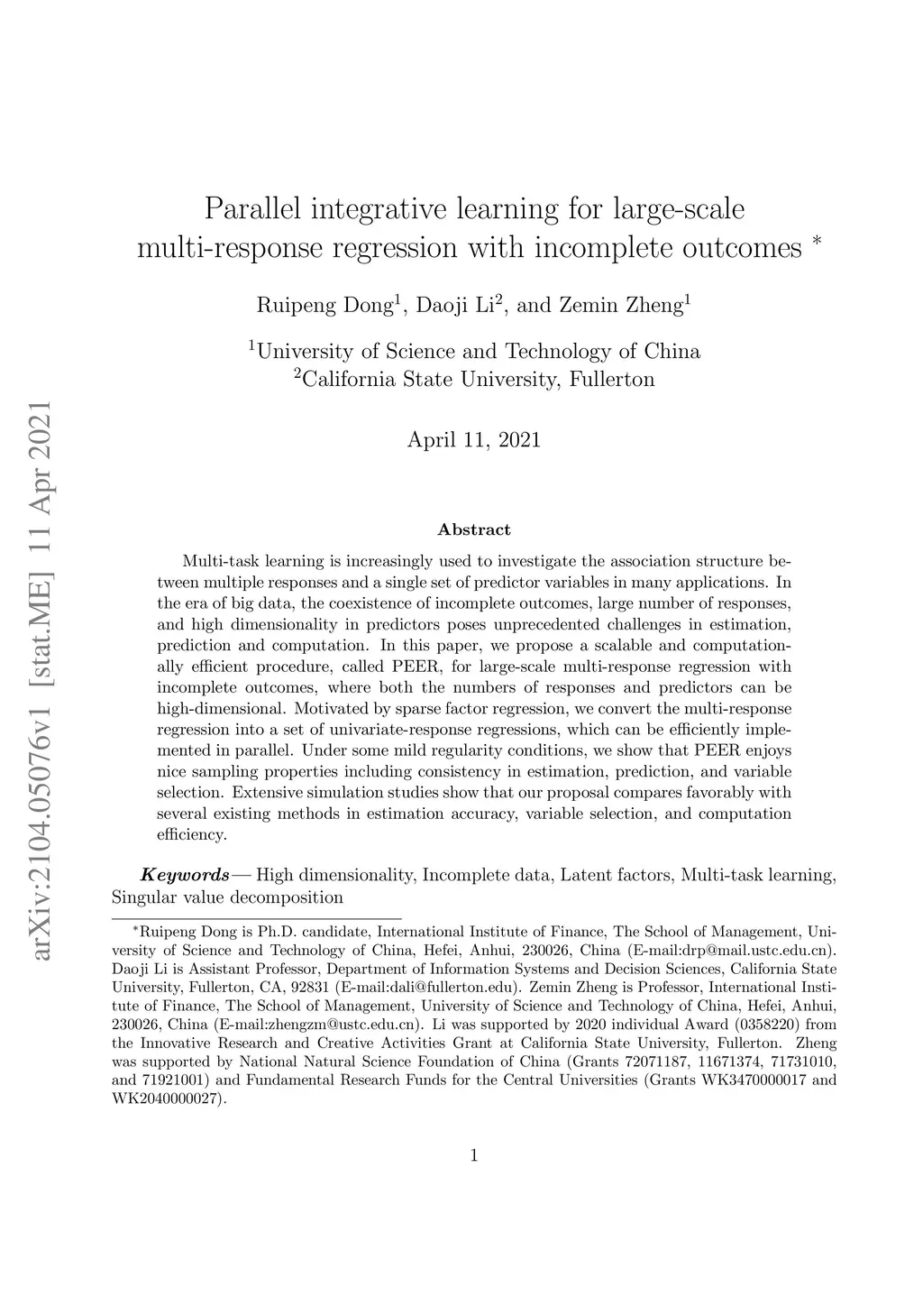 Multi-task learning is increasingly used to investigate the association structure between multiple responses and a single set of predictor variables in many applications. In the era of big data, the coexistence of incomplete outcomes, large number of responses, and high dimensionality in predictors poses unprecedented challenges in estimation, prediction, and computation. In this paper, we propose a scalable and computationally efficient procedure, called PEER, for large-scale multi-response regression with incomplete outcomes, where both the numbers of responses and predictors can be high-dimensional. Motivated by sparse factor regression, we convert the multi-response regression into a set of univariate-response regressions, which can be efficiently implemented in parallel. Under some mild regularity conditions, we show that PEER enjoys nice sampling properties including consistency in estimation, prediction, and variable selection. Extensive simulation studies show that our proposal compares favorably with several existing methods in estimation accuracy, variable selection, and computation efficiency.
