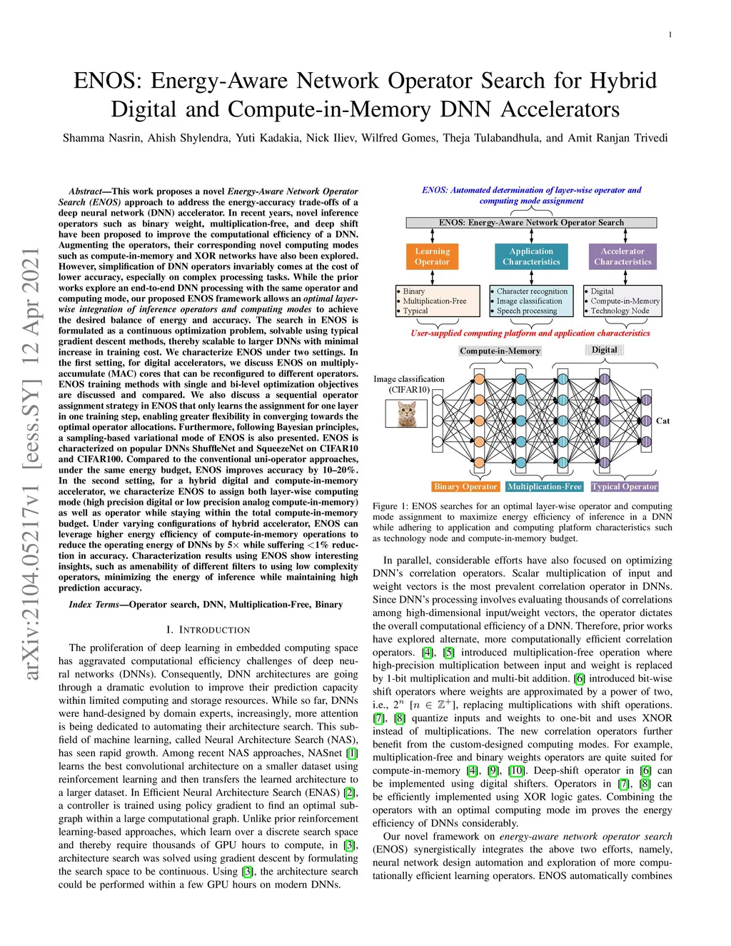 ENOS: Energy-Aware Network Operator Search for Hybrid Digital and