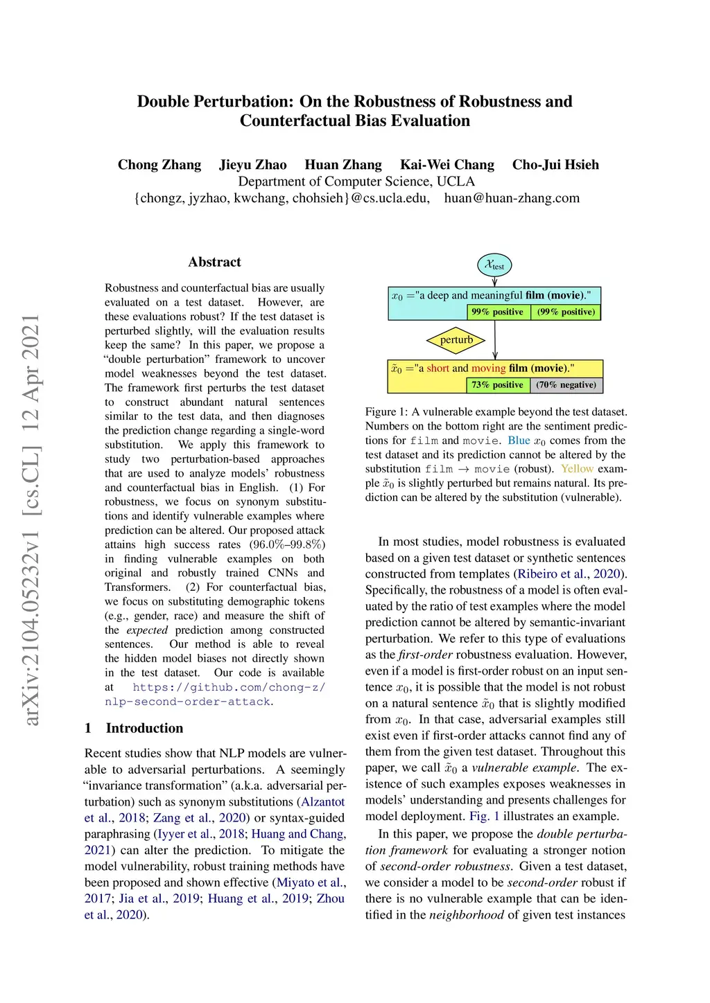 Robustness and counterfactual bias are usually evaluated on a test dataset. However, are these evaluations robust? If the test dataset is perturbed slightly, will the evaluation results keep the same? In this paper, we propose a "double perturbation" framework to uncover model weaknesses beyond the test dataset. The framework first perturbs the test dataset to construct abundant natural sentences similar to the test data, and then diagnoses the prediction change regarding a single-word substitution. We apply this framework to study two perturbation-based approaches that are used to analyze models' robustness and counterfactual bias in English. (1) For robustness, we focus on synonym substitutions and identify vulnerable examples where prediction can be altered. Our proposed attack attains high success rates (96.0%-99.8%) in finding vulnerable examples on both original and robustly trained CNNs and Transformers. (2) For counterfactual bias, we focus on substituting demographic tokens (e.g., gender, race) and measure the shift of the expected prediction among constructed sentences. Our method is able to reveal the hidden model biases not directly shown in the test dataset. Our code is available at https://github.com/chong-z/nlp-second-order-attack.