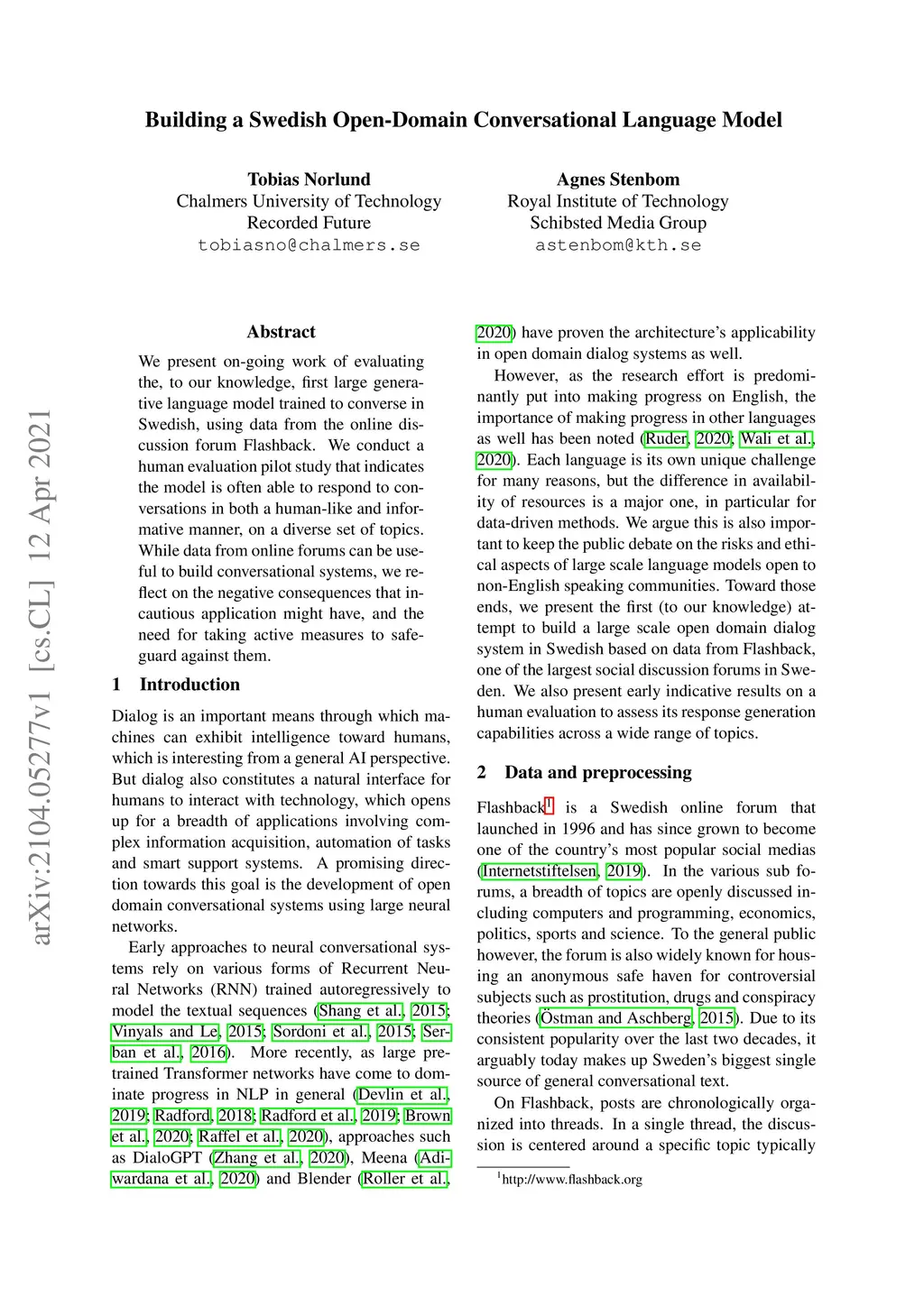 Nordic Conference of Computational Linguistics (NoDaLiDa), 2021