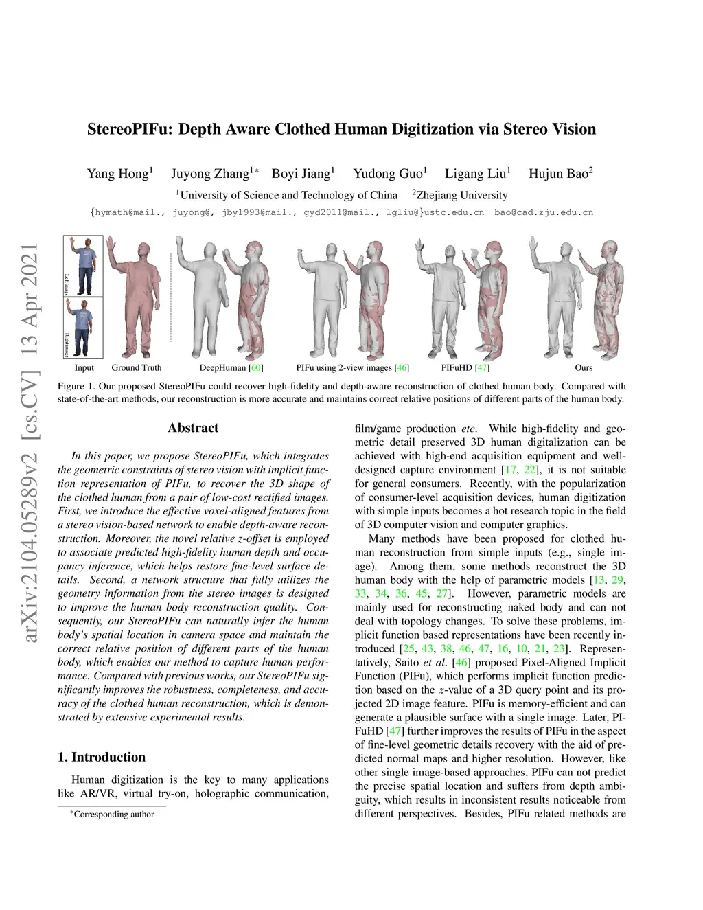 StereoPIFu: Depth Aware Clothed Human Digitization via Stereo Vision