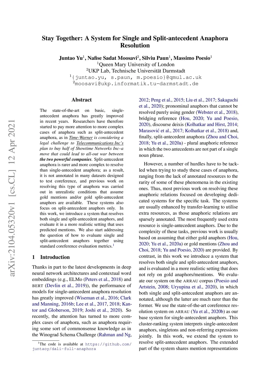 Stay Together: A System for Single and Split-antecedent Anaphora