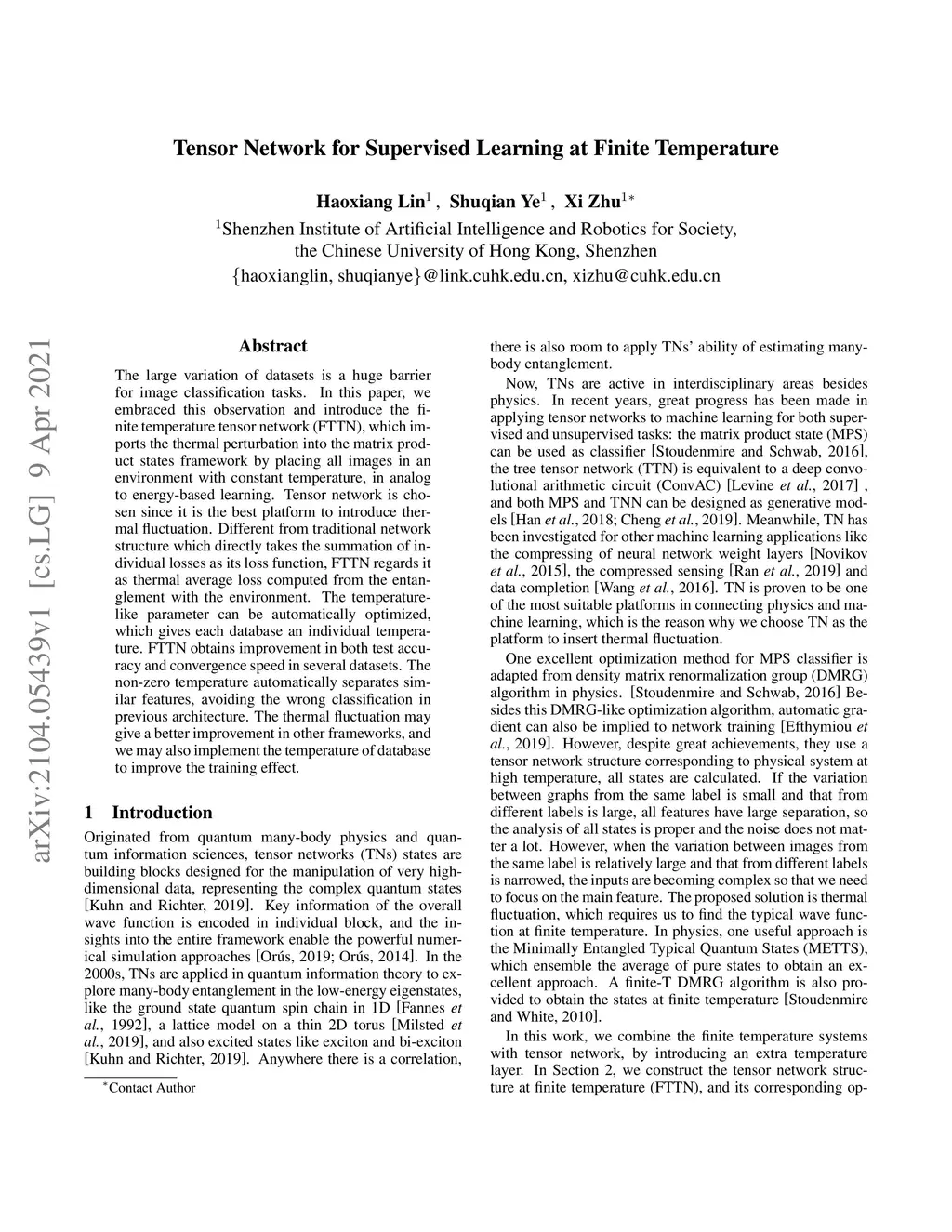 The large variation of datasets is a huge barrier for image classification tasks. In this paper, we embraced this observation and introduce the finite temperature tensor network (FTTN), which imports the thermal perturbation into the matrix product states framework by placing all images in an environment with constant temperature, in analog to energy-based learning. Tensor network is chosen since it is the best platform to introduce thermal fluctuation. Different from traditional network structure which directly takes the summation of individual losses as its loss function, FTTN regards it as thermal average loss computed from the entanglement with the environment. The temperature-like parameter can be automatically optimized, which gives each database an individual temperature. FTTN obtains improvement in both test accuracy and convergence speed in several datasets. The non-zero temperature automatically separates similar features, avoiding the wrong classification in previous architecture. The thermal fluctuation may give a better improvement in other frameworks, and we may also implement the temperature of database to improve the training effect.