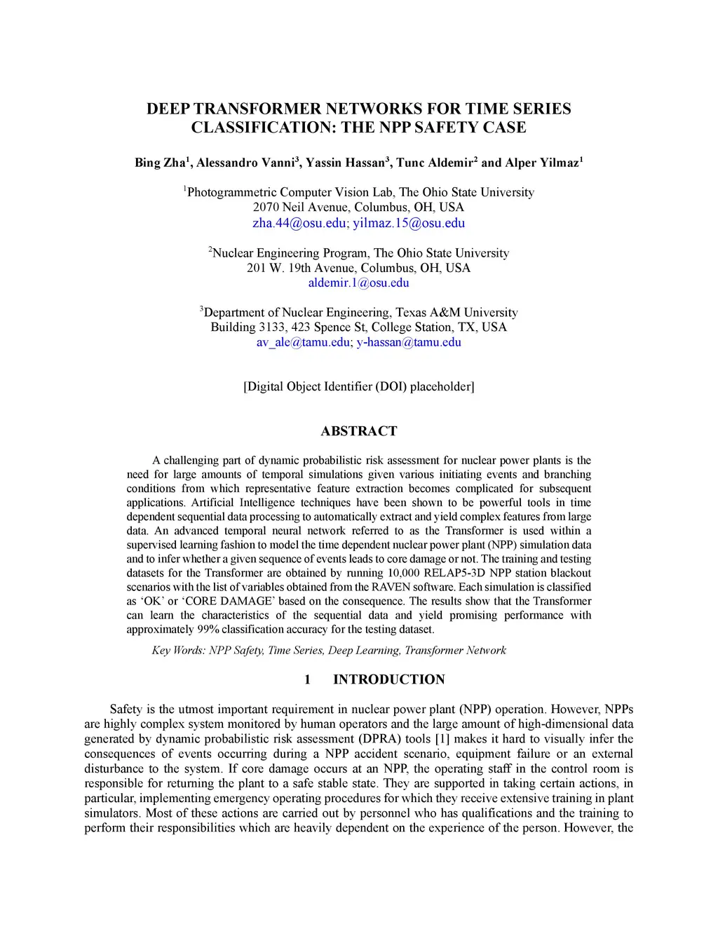 Deep Transformer Networks for Time Series Classification: The NPP Safety