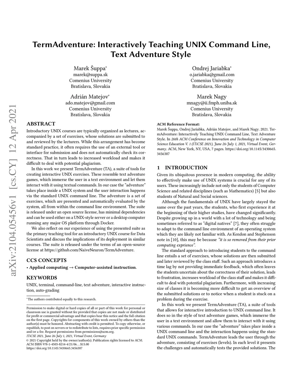 TermAdventure: Interactively Teaching UNIX Command Line, Text Adventure