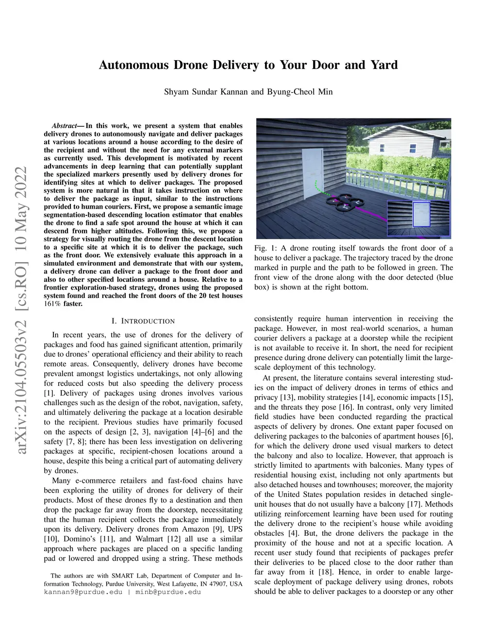 In this work, we present a system that enables delivery drones to autonomously navigate and deliver packages at various locations around a house according to the desire of the recipient and without the need for any external markers as currently used. This development is motivated by recent advancements in deep learning that can potentially supplant the specialized markers presently used by delivery drones for identifying sites at which to deliver packages. The proposed system is more natural in that it takes instruction on where to deliver the package as input, similar to the instructions provided to human couriers. First, we propose a semantic image segmentation-based descending location estimator that enables the drone to find a safe spot around the house at which it can descend from higher altitudes. Following this, we propose a strategy for visually routing the drone from the descent location to a specific site at which it is to deliver the package, such as the front door. We extensively evaluate this approach in a simulated environment and demonstrate that with our system, a delivery drone can deliver a package to the front door and also to other specified locations around a house. Relative to a frontier exploration-based strategy, drones using the proposed system found and reached the front doors of the 20 test houses 161% faster.