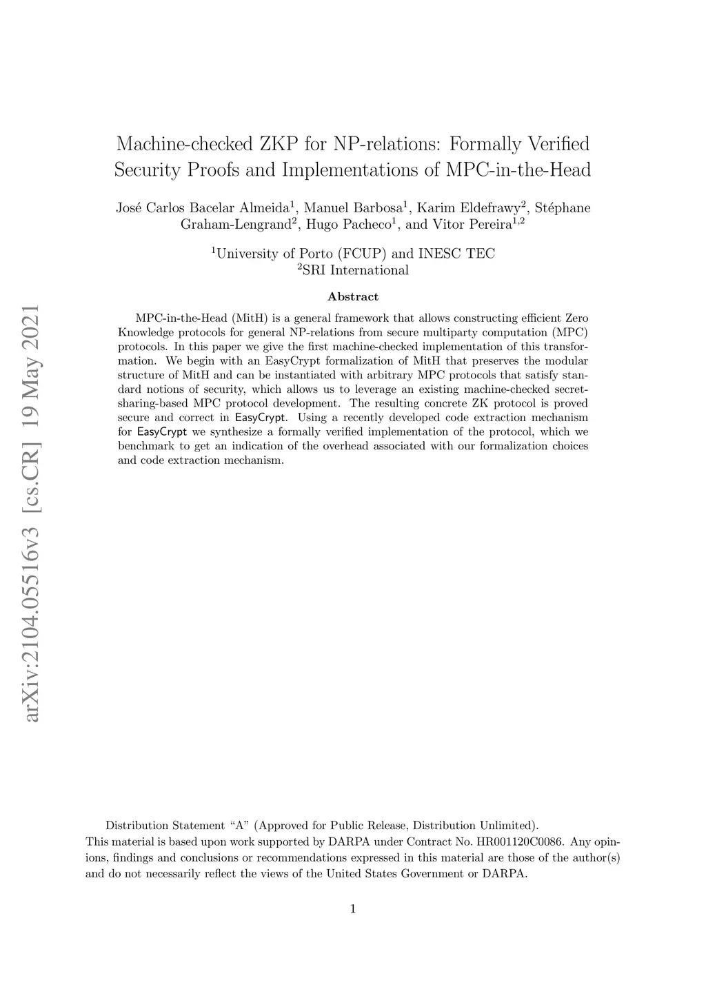 MPC-in-the-Head (MitH) is a general framework that allows constructing efficient Zero Knowledge protocols for general NP-relations from secure multiparty computation (MPC) protocols. In this paper we give the first machine-checked implementation of this transformation. We begin with an EasyCrypt formalization of MitH that preserves the modular structure of MitH and can be instantiated with arbitrary MPC protocols that satisfy standard notions of security, which allows us to leverage an existing machine-checked secret-sharing-based MPC protocol development. The resulting concrete ZK protocol is proved secure and correct in EasyCrypt. Using a recently developed code extraction mechanism for EasyCrypt we synthesize a formally verified implementation of the protocol, which we benchmark to get an indication of the overhead associated with our formalization choices and code extraction mechanism.