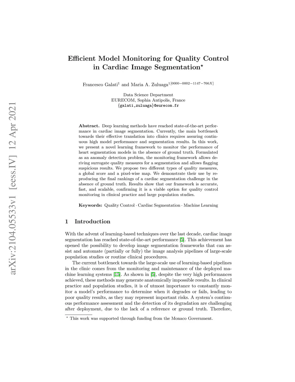 Efficient Model Monitoring for Quality Control in Cardiac Image