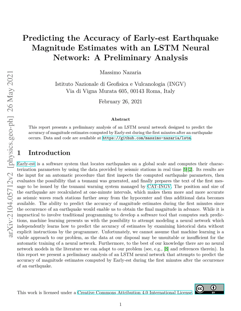 This report presents a preliminary analysis of an LSTM neural network designed to predict the accuracy of magnitude estimates computed by Early-est during the first minutes after an earthquake occurs.