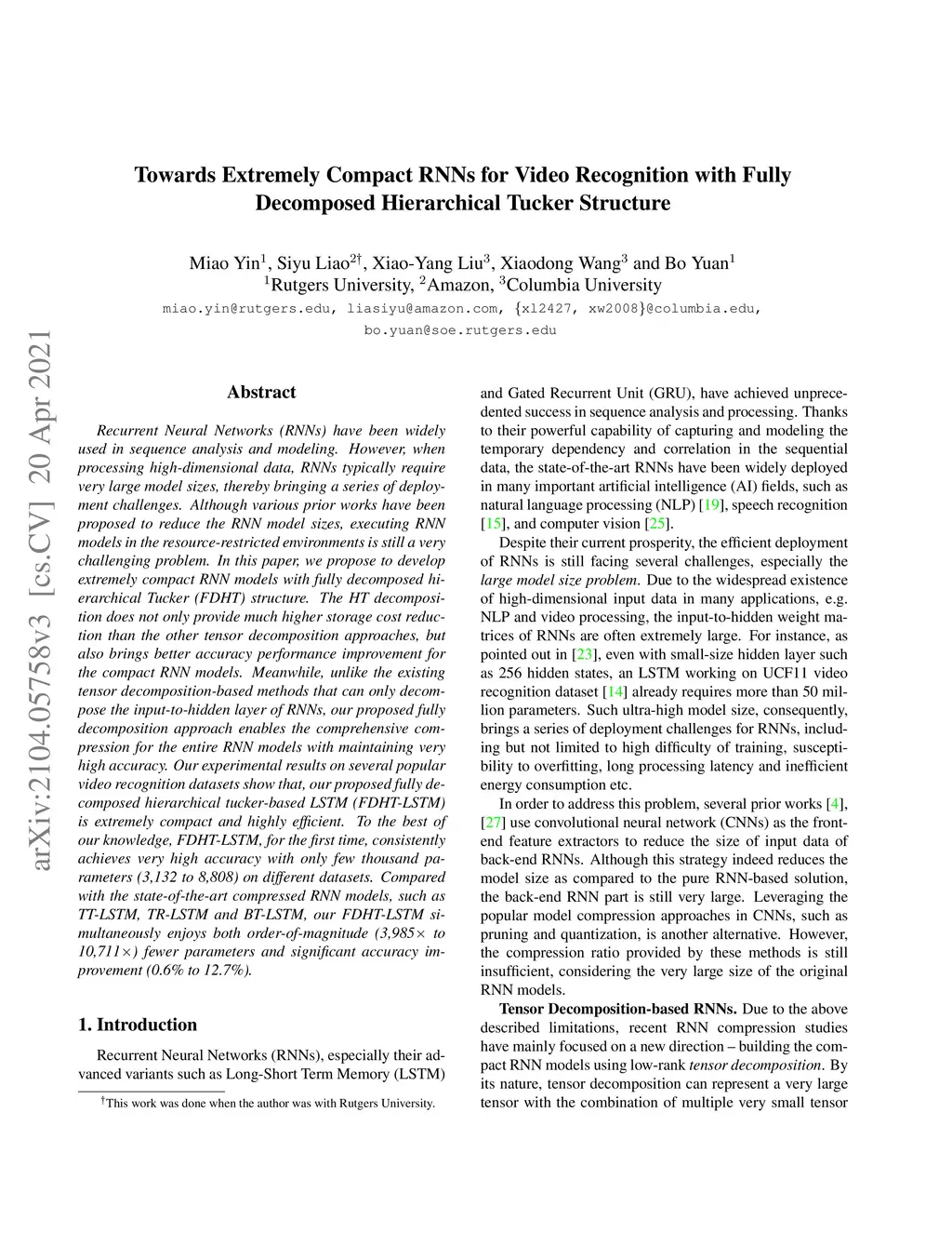 Towards Extremely Compact RNNs for Video Recognition with Fully